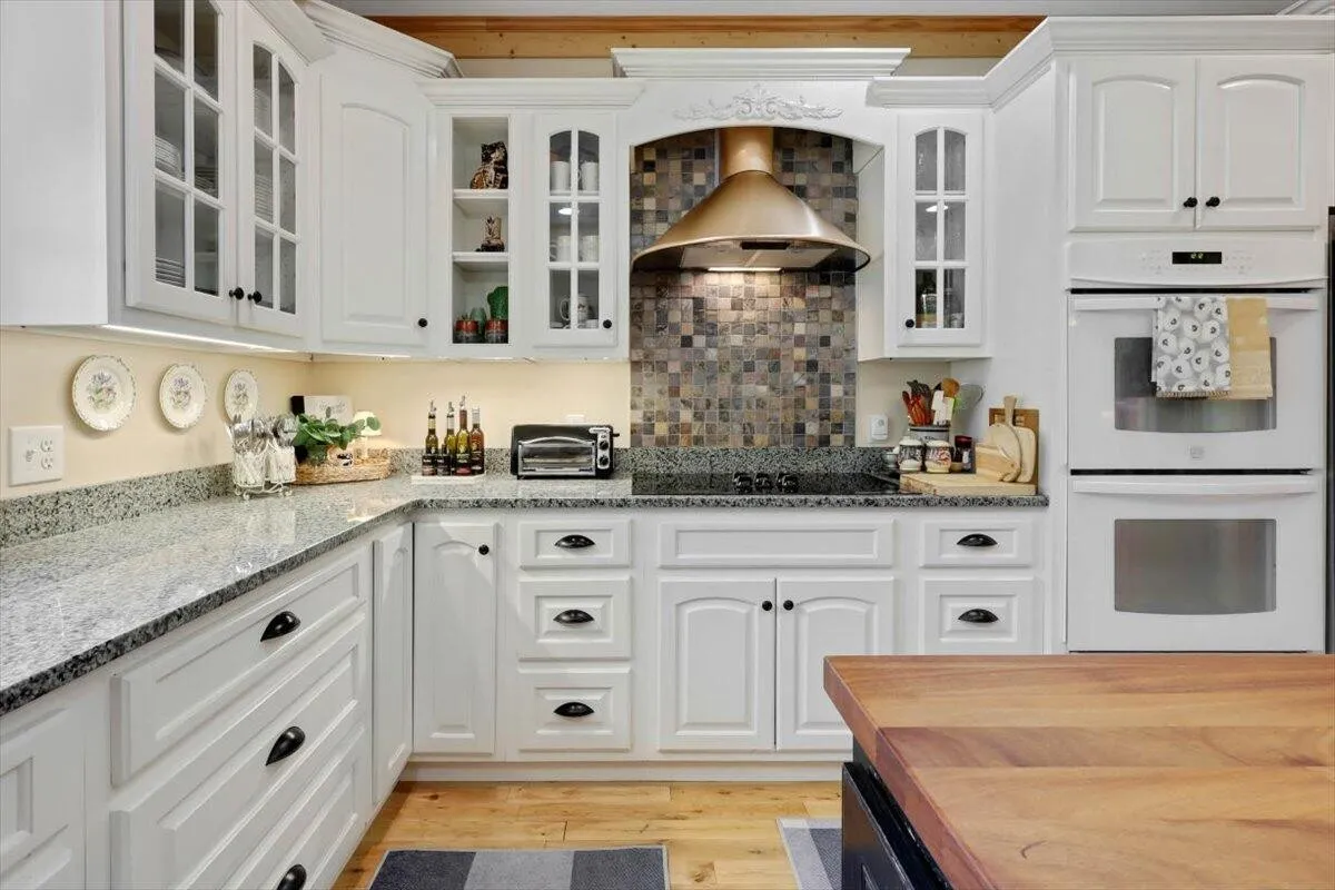 The heart of the home is the chef’s kitchen, featuring granite countertops, a five-burner gas stove with a warmer drawer, pull-outs in the warm-colored cabinetry, a newer dishwasher and refrigerator, and a generous butcherblock island workspace. The custom kitchen pantry will make you the envy of other cooks. It’s open to the living room, where a cozy fireplace and built-in cabinetry invites you to relax and unwind.