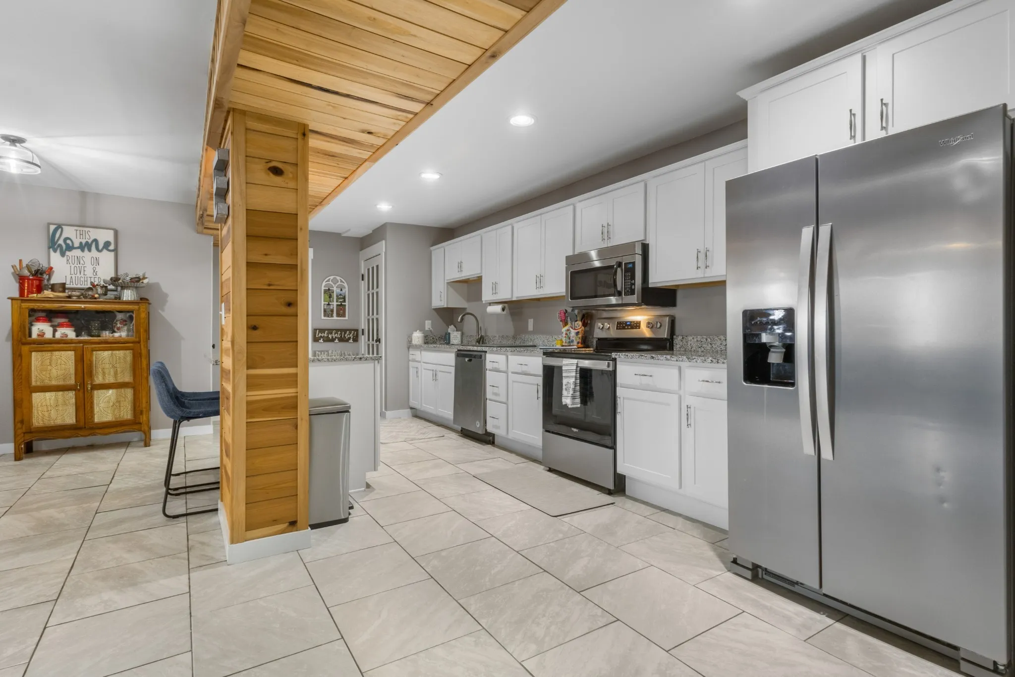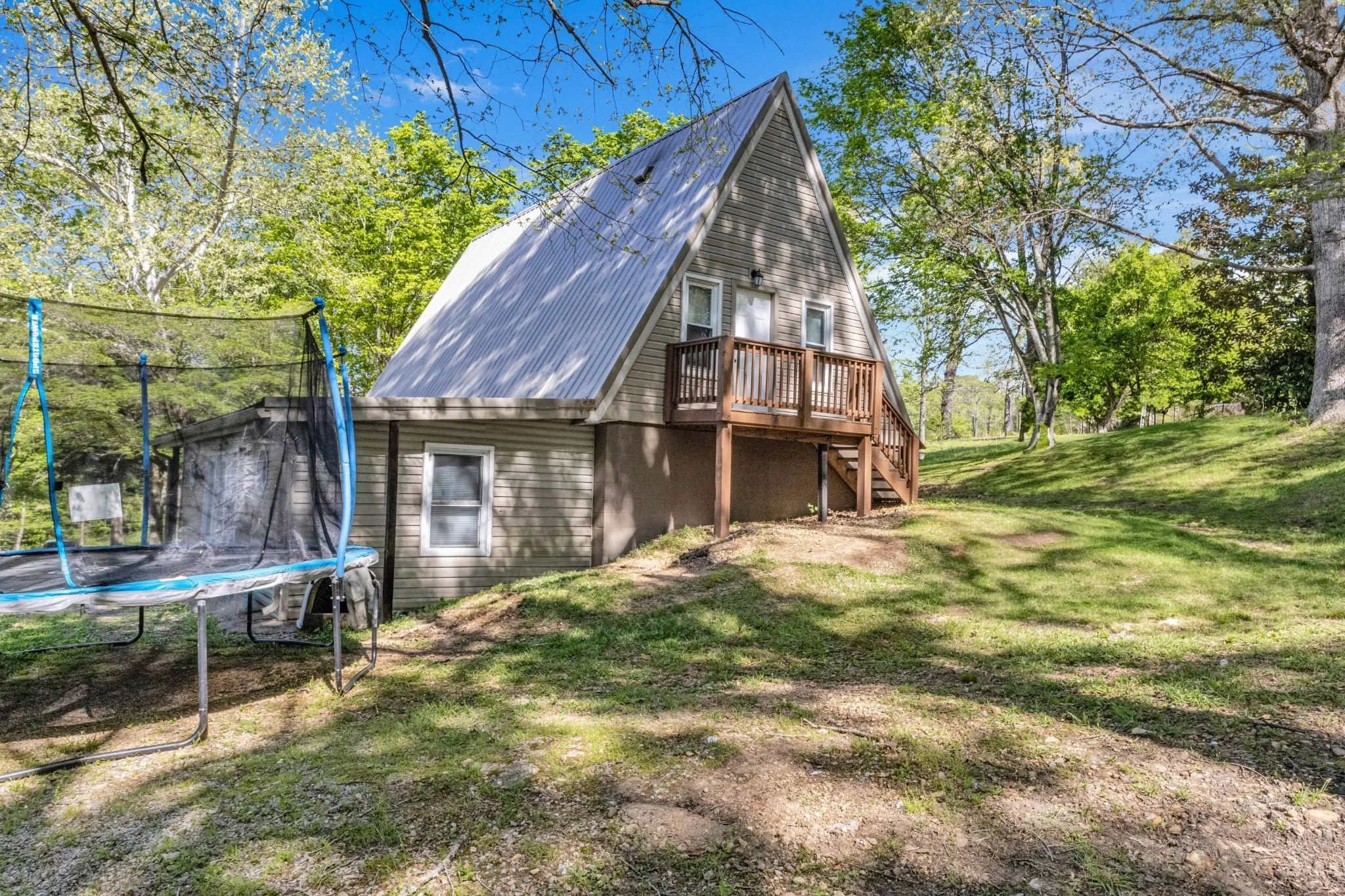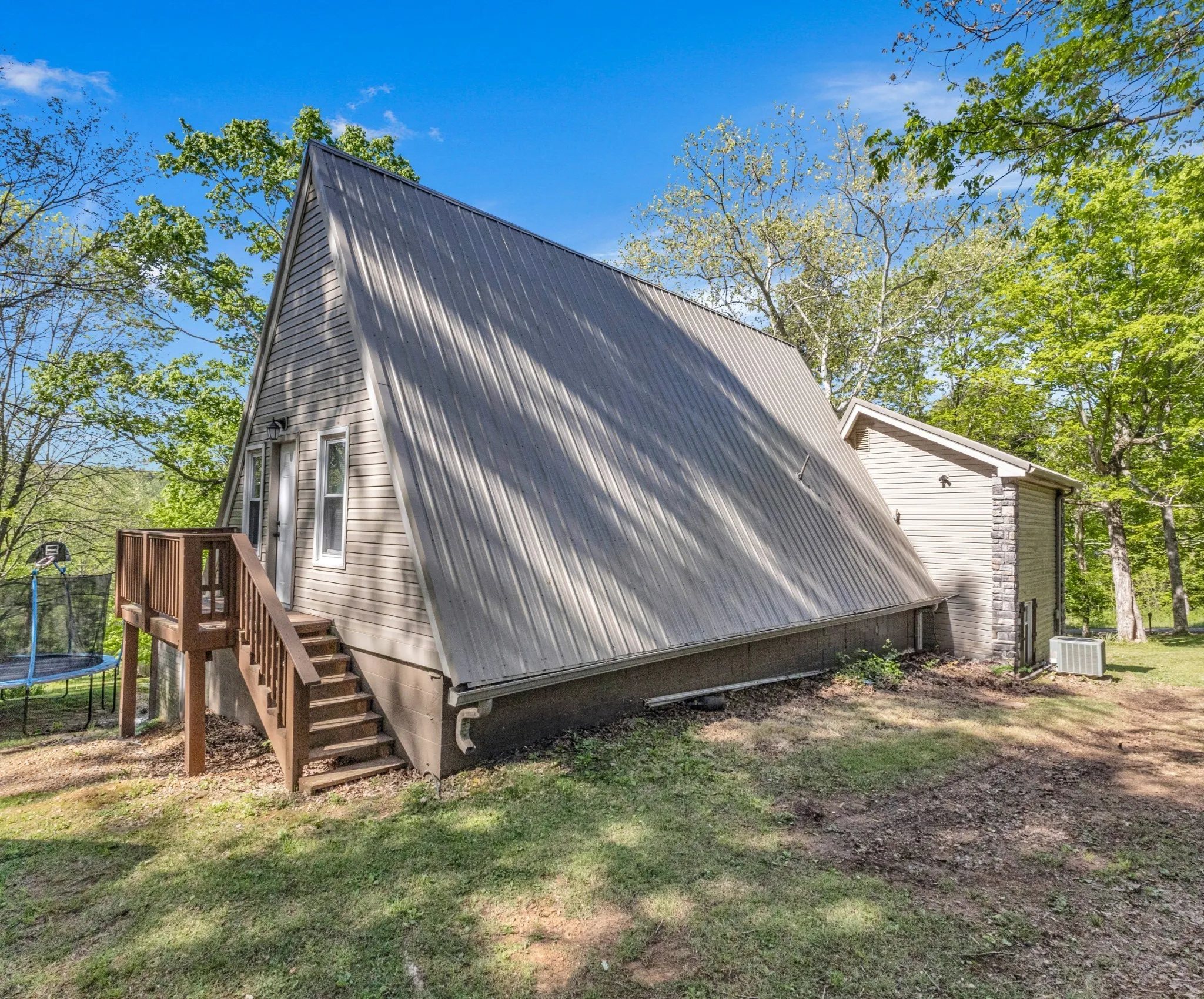 Charming A-Frame on a spacious 1-acre lot with no city taxes! This 3 bed, 3 bath country retreat was renovated less than 5 years ago and features tile flooring in wet areas, granite countertops, and an open-concept living area with beautiful wood accents. The master suite includes an oversized closet and ensuite bath with a tile surround tub/shower combo, and the home offers a covered porch and deck that overlooks the wooded lot, an attached storage area that is accessible from the outside of the home, and much more. A perfect blend of rustic charm and modern updates!