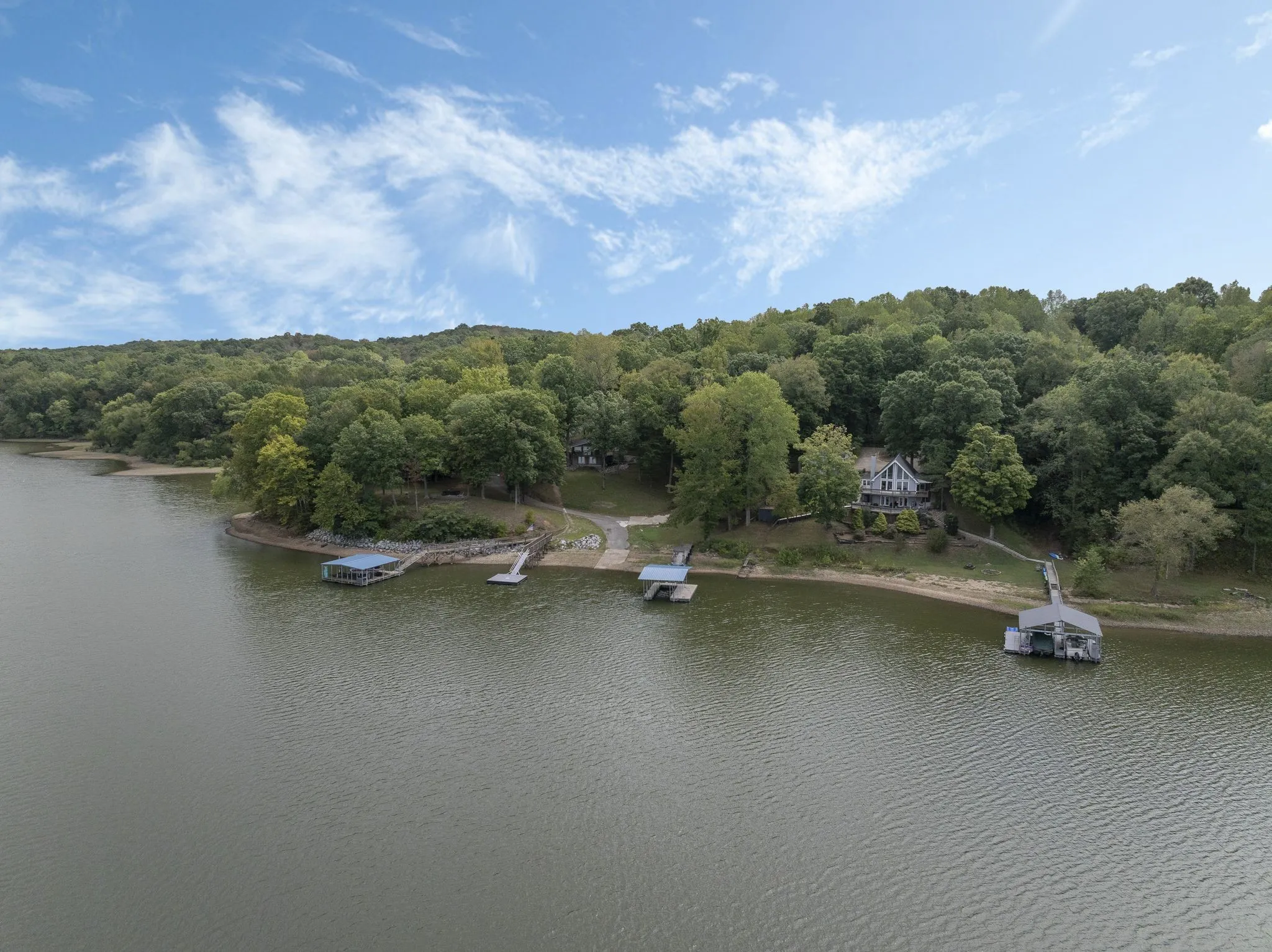 It is almost impossible to find the perfect Lake Front home, look no further. This one has it all. Gorgeous view of Kentucky Lake from just about any room in the house. The home consists of an open floor plan on main level, updated throughout. Custom kitchen with stainless appliances, oversized island with extra eating area, great room/dining room combo, full bath all on main level! The great room has just been freshly painted & one wall of paneling has been replaced to match the rest of the room! The basement level has two good sized bedrooms, full bath, extra large utility room with storage. There is storage area outside also. Decks surround most of the home, patio on basement level. The property is improved with a private dock, two slips with lifts, has electric and water at the dock. There has just been a 10×30 swim platform added along with trex on floating deck area. One of the nicest docks you will find. You have deep water year round. Enjoy fishing, water skiing or any other water activity by just walking out your door to your boat! Call today for appointment to see this wonderful Lake Front Home!