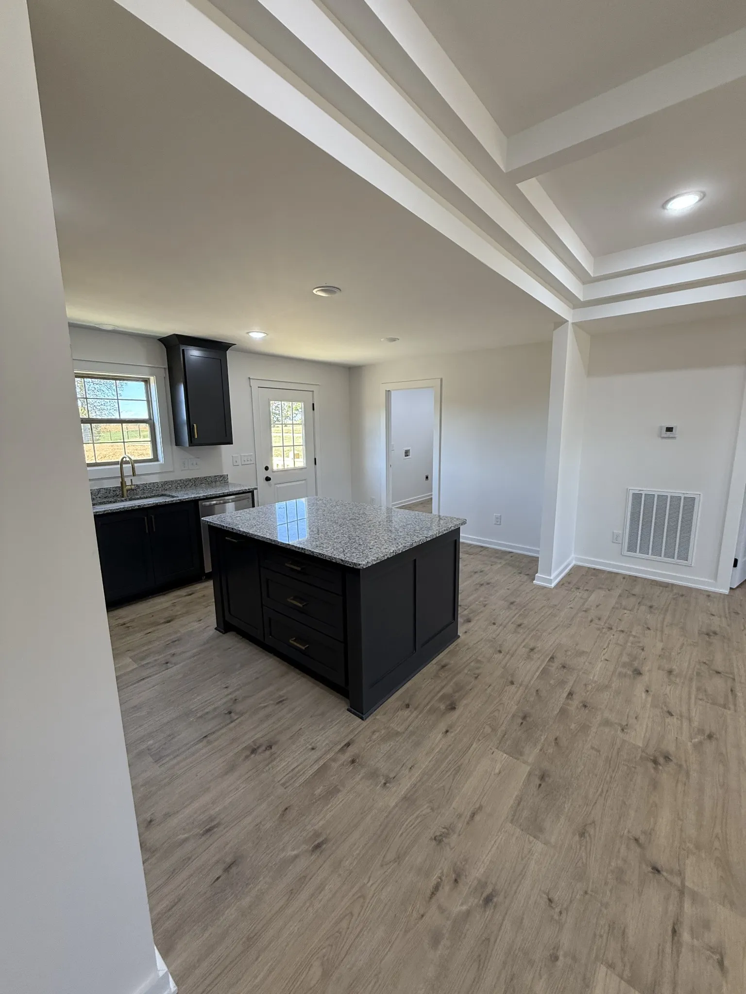Check out this new construction home- 3 bed- 2 bath, sitting on 1.28 acres. This home has nice custom features: including custom cabinetry- with island trash cans and granite countertops, a large utility room, a double vanity, and a walk in closet in the master suite.