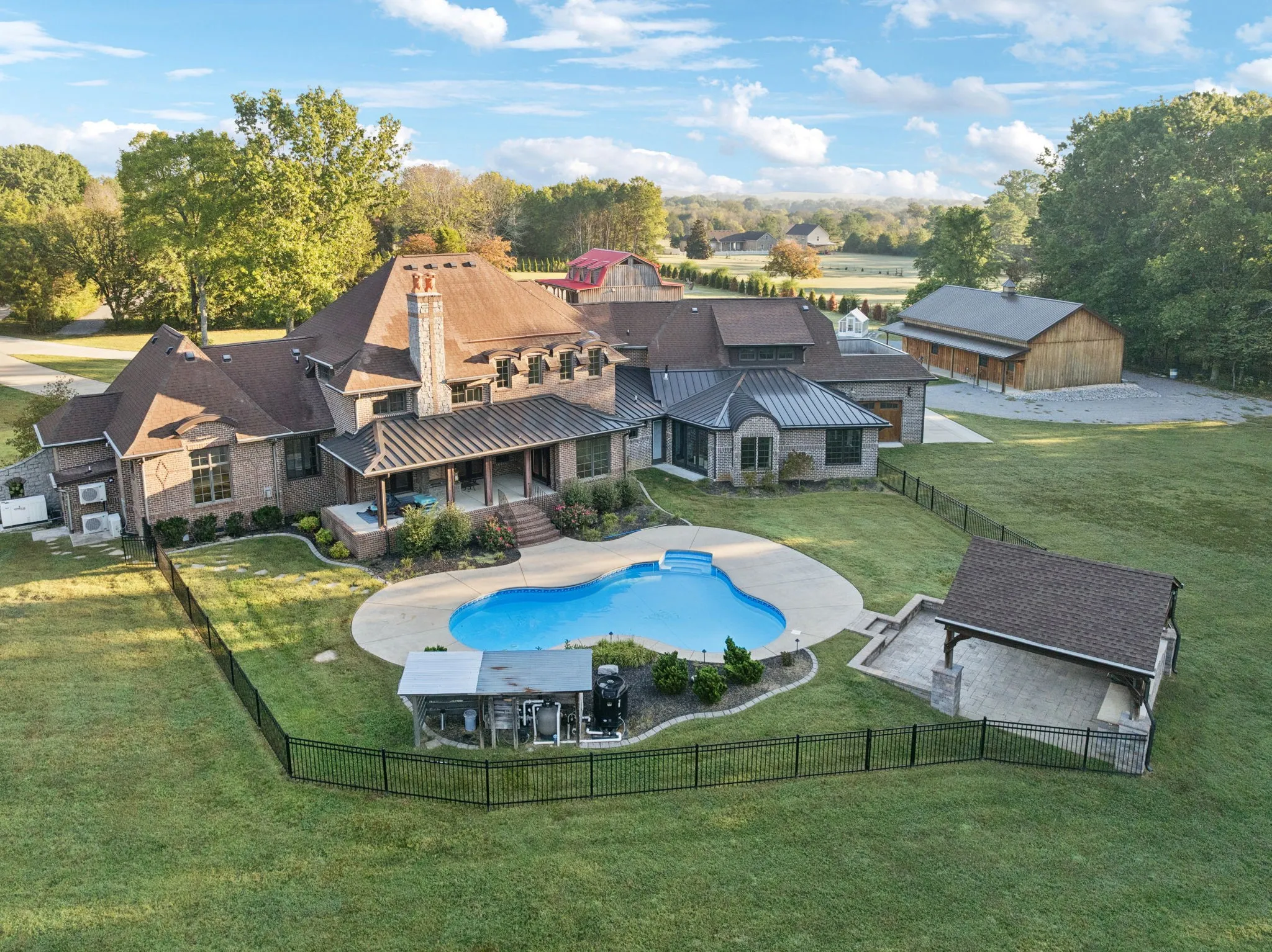 +"PublicRemarks": "Great family compound and private retreat with many custom upgrades and finishes. This would be a perfect fit for a Nashville entertainer looking for privacy. Two beautiful homes and a shop building, 6.67 acres of private acreage, convenient to Mt. Juliet and Nashville. The striking main residence includes 5,684 sq ft, built in 2010. 4 bedrooms, 4 full baths and 2 half baths, expansive living area with fireplace open to a large chef's kitchen, formal dining room, primary bedroom with on suite bath and walk in closet. A large home office or den area is on the main level, along with a work out room with infrared sauna and adjacent full bath. Secured safe room, whole home generator. Right outside the living area doors offers a family oasis with large in ground swimming pool, motorized screened in porch, full outdoor kitchen with built in grill. The upstairs expansion includes another master suite and underneath is the 4 car oversized garage. The guest house is perfect for family, guests, or musicians retreat/studio with 1,556 sq ft, fully renovated in 2021, offers two bedrooms, one bathroom, full kitchen and den area, with a full wrap around porch. 1,500 sq ft finished barn (built in 2022), which could be used as a separate office, man cave or game room, which has central heat & air. This private family compound retreat is the perfect, convenient spot to gather, experience and live in a natural private setting with nature and wildlife."
