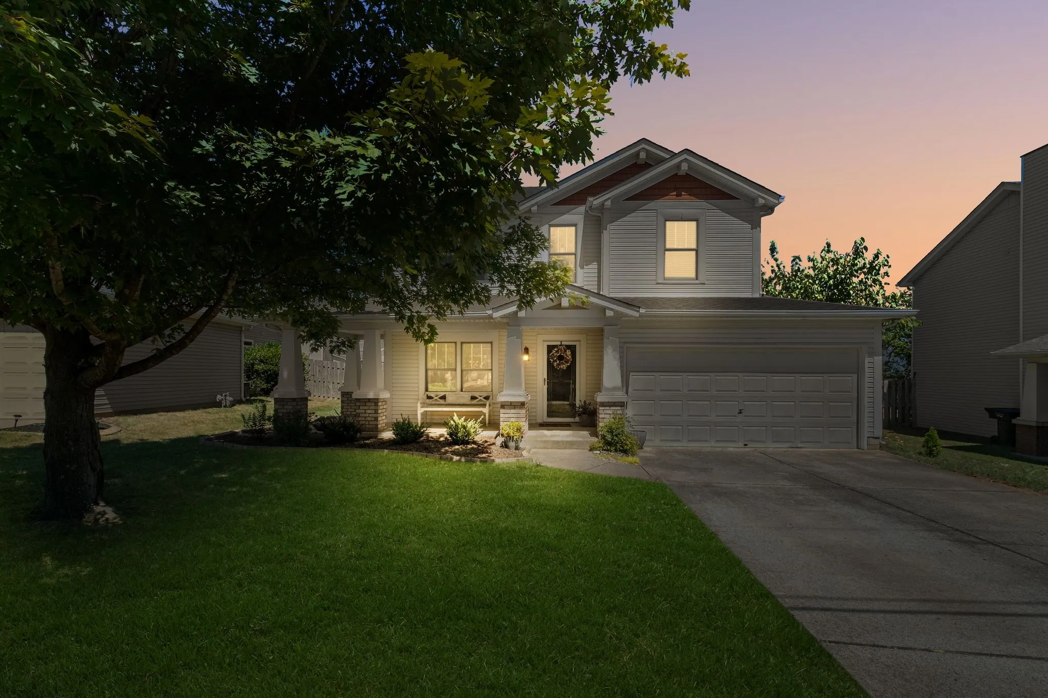 Super cute 3 BR, 2.5 BA home has a cozy feel when you walk in. The covered front porch is great to have your morning coffee and read on these nice fall mornings! Walk right into the front door into the living room w/gas fireplace. Newer laminate flooring downstairs. Right off the family room is the large kitchen area with upgraded appliances, nice white cabinetry & a large space for dining. The flow from living room to kitchen makes it great for entertaining. The laundry room has stacked washer/dryer that will remain & extra area for storage. Half bath downstairs has been beautifully updated with wainscotting & wallpaper. The primary is upstairs w/full bath & walk-in closet. BR 2 & 3 are upstairs as well with another full bath. Backyard is fully fenced w/playset, shed & a large metal gazebo on the patio too! 2 car attached garage. Truxton Park is convenient to shopping, restaurants & Old Hickory Lake. SHOWINGS BEGIN SUNDAY 10/13