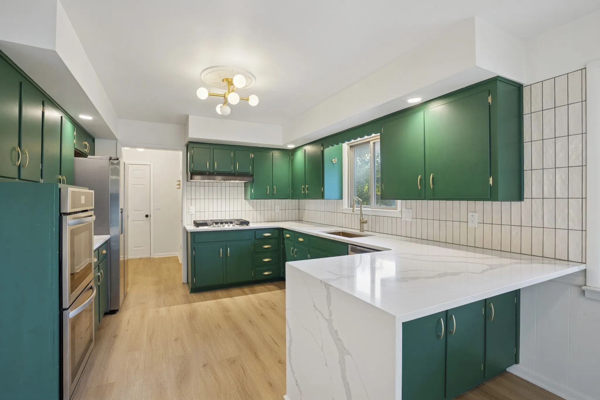 Inside, you’ll find 3 bedrooms, 2.5 baths, and 1,836 square feet of updated living space. The kitchen features quartz countertops, a gas range with double ovens, and modern lighting. New luxury vinyl floors run throughout, and the renovated primary bath adds a fresh touch. Morning light fills the open living area and the large yard offers plenty of room for play or gardening. The oversized 2-car garage includes a climate-controlled storage room—perfect for hobbies or tools.