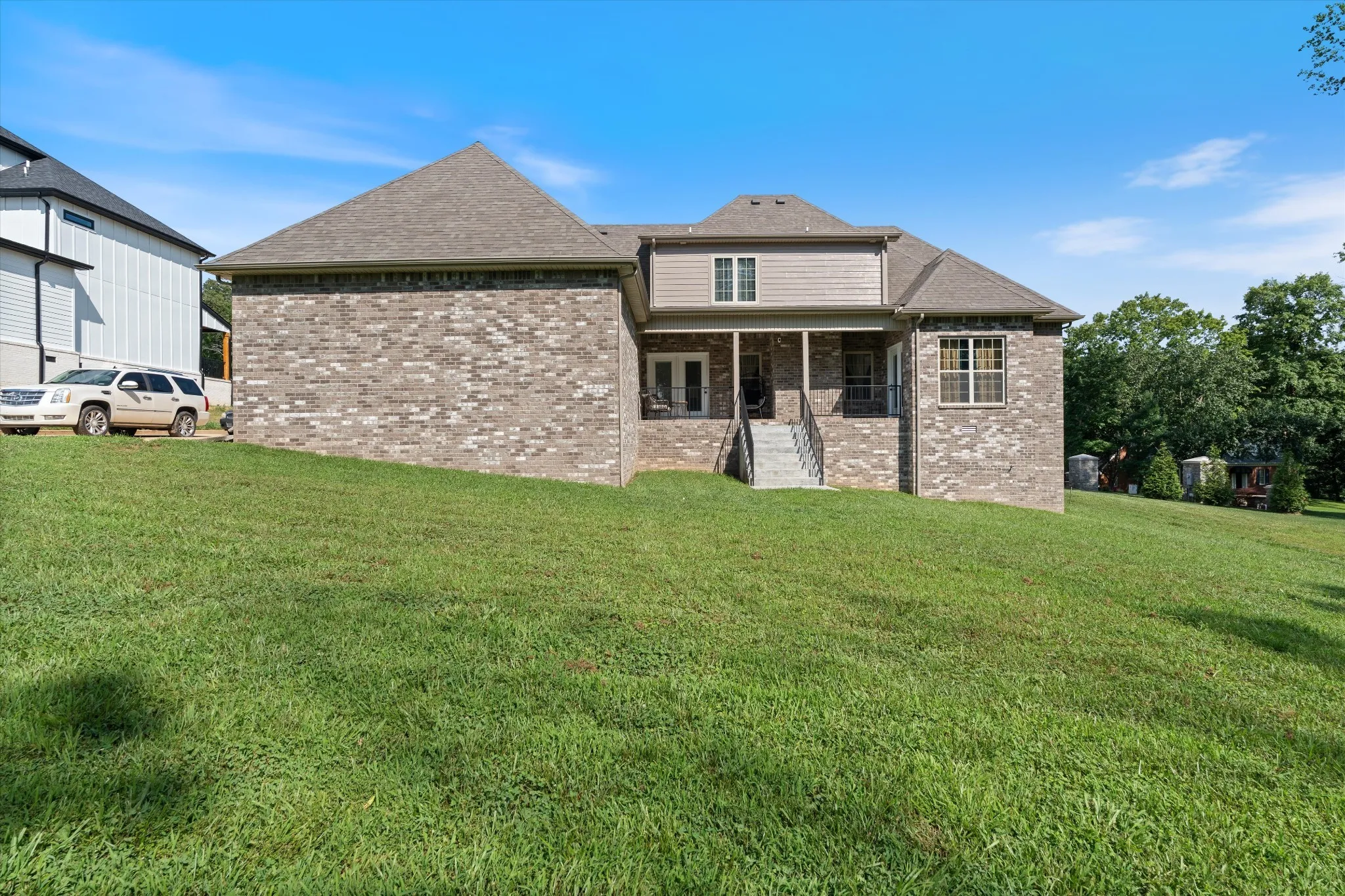 Welcome to 823 Shady Bluff Trail, a one-of-a-kind beautifully built brick custom home in Clarksville.The main level features both a primary suite and a guest suite each with a full bathroom.Continue to the private office or study,laundry room with sink, large kitchen and seperate formal dining room perfect for holidays and dinner parties. Primary boasts a separate entrance to back patio, tile shower and separate tub, and a custom built closet.The second level has 3 spacious bedrooms with 2 bathrooms and walk-in closets. Theater room is perfect for entertaining and relaxing with a door to the large attic space with walk in access. Enjoy outdoor privacy living which backs to a tree line. Home includes a long driveway and 3 car garage. All appliances and security system will convey with property. Schedule your private showing today!