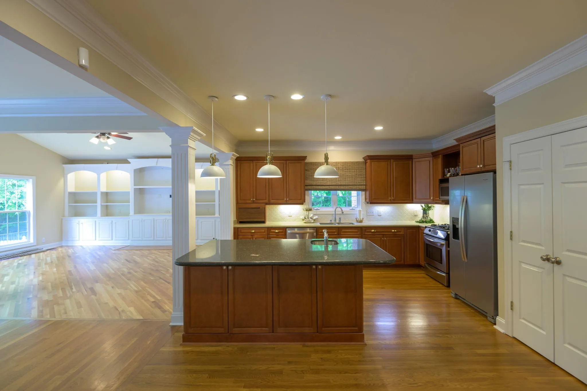 Interior Features Walk-In Closet(s), High Ceilings, Built-in Features, Kitchen Island, Pantry, Entrance Foyer, Bookcases, Ceiling Fan(s), Extra Closets, Redecorated
