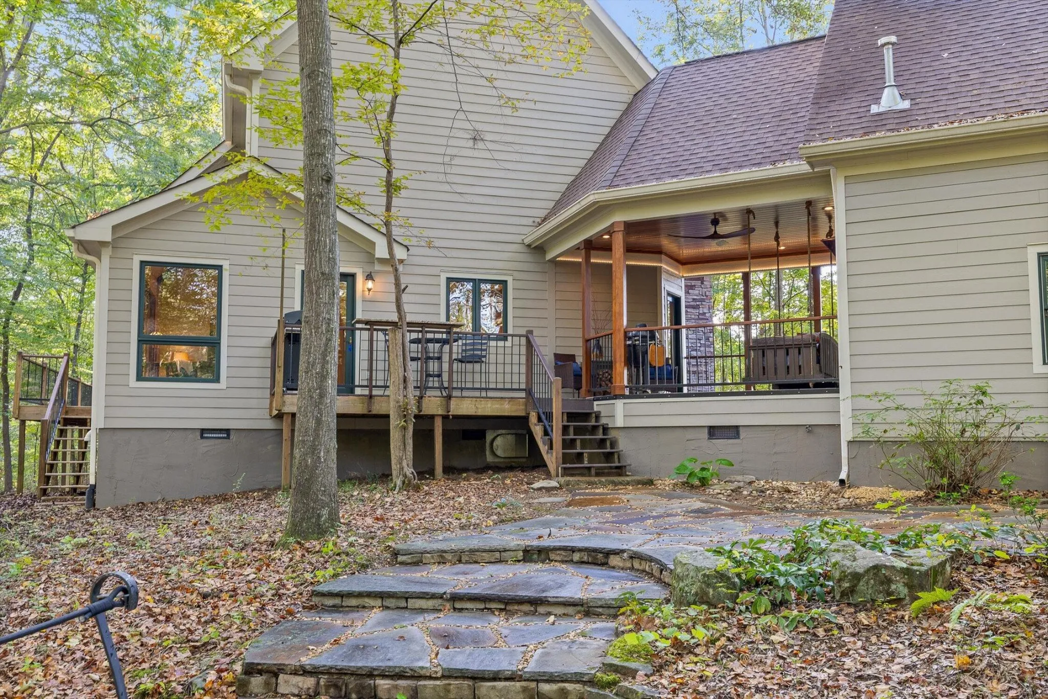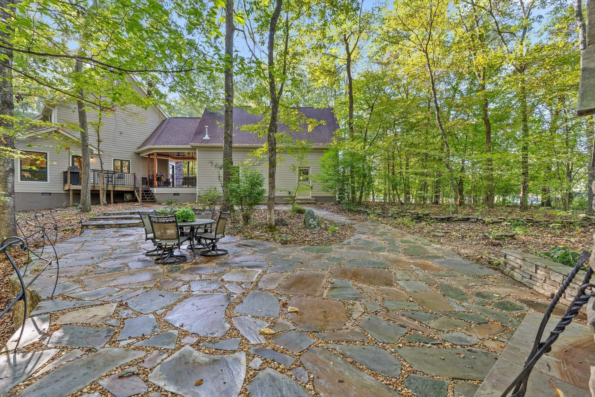 AN OUTDOOR PARADISE ON NORTH CHICKAMAUGA CREEK – 3.8 +/-Acres with 600+/- feet of creek frontage with amazing custom built one owner home offering 3 bedrooms and 2.5 baths with 2536 sq ft. Welcome to 4630 Ansel Circle – a truly special retreat tucked along a tranquil creek in Hixson, Tennessee. Take your personal kayak to the water or enjoy watching the kayakers paddle by. This property offers nature right from your own backyard. Deer trails weave through the property, native plants thrive, and the view of the water create a peaceful backdrop to everyday life. This home blends comfort, craftsmanship and charm. Exterior has great curb appeal and sits perfectly on the lot. Step inside to find vaulted ceiling in great room and lots of light with views of creek from every window. Entertaining can easily flow to the large deck with creek views. Grand wood burning stone fireplace with detailed woodwork on mantle anchors the room. Kitchen is open to breakfast area and offers plenty of space for the chef of the household with abundance of storage in the custom cabinetry and pantry area. Sit and watch the deer walk by from your private primary main level suite. Bedroom is spacious with hardwood and leads to bath with separate vanities, shower and spacious walk-in closet. Relax in the soaker tub and watch the seasons as the change from the window. Formal dining room, half bath and spacious laundry also located on main level. Upstairs, you will find a loft area, two large guest bedrooms, and a full bath plus easy access to attic walk out storage with approximately 600+/- sq ft of unfinished space above the garage – perfect for a future bonus room or studio office. The covered breezeway connecting the kitchen and garage is the perfect place to relax on the porch swing – a favorite spot to enjoy morning coffee while overlooking both the front and back yards, as well as the peaceful creek.