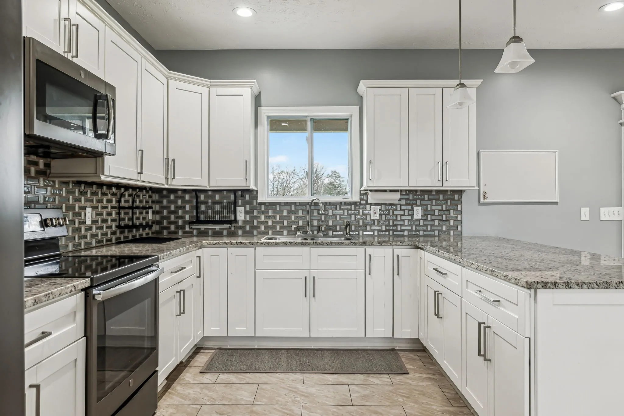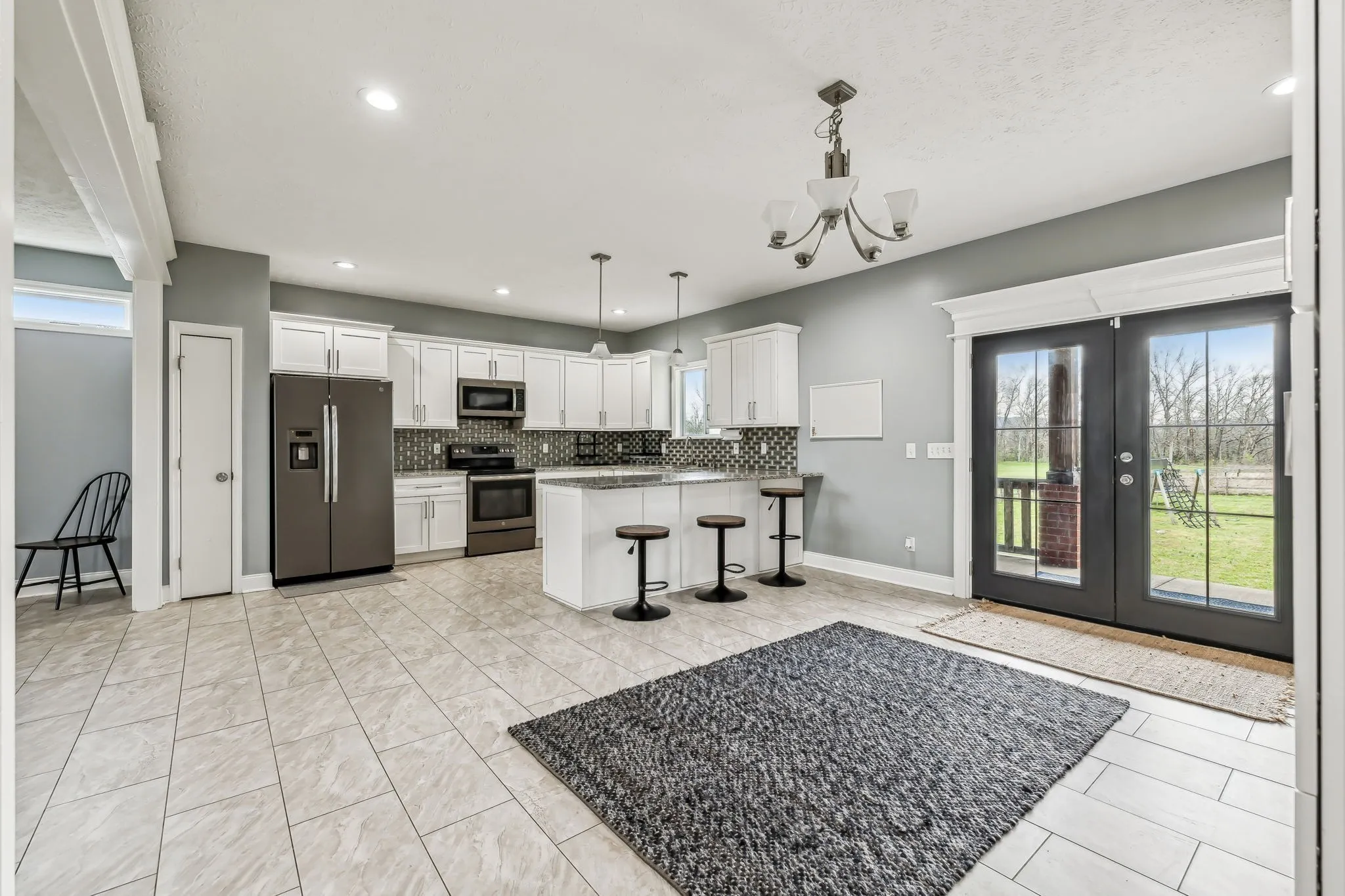 Sitting on nearly 2 acres, this custom build has all of the nooks, crannies and built ins you’d expect in a home the builder built for himself! This 2018 home has a really incredible open concept floor plan with 4 rooms that are being used as bedrooms, plus a flex room and a huge bonus area that’s set up as two separate spaces. The downstairs flex room has its own closet and is tucked away at the back of the home making it the perfect spot for an office, homeschool room or even a giant pantry or storage room. Kitchen has custom cabinetry, granite tops, tile backsplash, black stainless appliances and a pantry. The oversized first floor primary bedroom has a walk-in closet and huge shower with dual shower heads. The main level also features a large laundry room, drop zone, and the half bath has space to add a shower, turning it into a full bath if desired. Tile and hardwood flooring throughout.