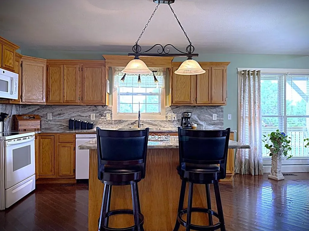 Welcome to this 1790 sqft retreat that blends rustic charm with modern comfort. Featuring a unique lake cabin feel, this 3 bed, 2.5 bath home is perfect for anyone seeking a warm inviting atmosphere surrounded by natural beauty. Rich hardwood floors, granite countertops, soaring ceilings, and even a catwalk out to an upstairs balcony make this house one of a kind! Large windows fill the home with natural light and the wraparound deck allows you to enjoy breathtaking mountain views at any time of the day. Finish off this amazing property with a massive detached garage/workshop with half bath, walkout crawl space for easy access and an extra lot making the total land 1.6 acres. This property has it all! New upstairs HVAC and new water heater. Seller to provide a one-year Home Warranty.