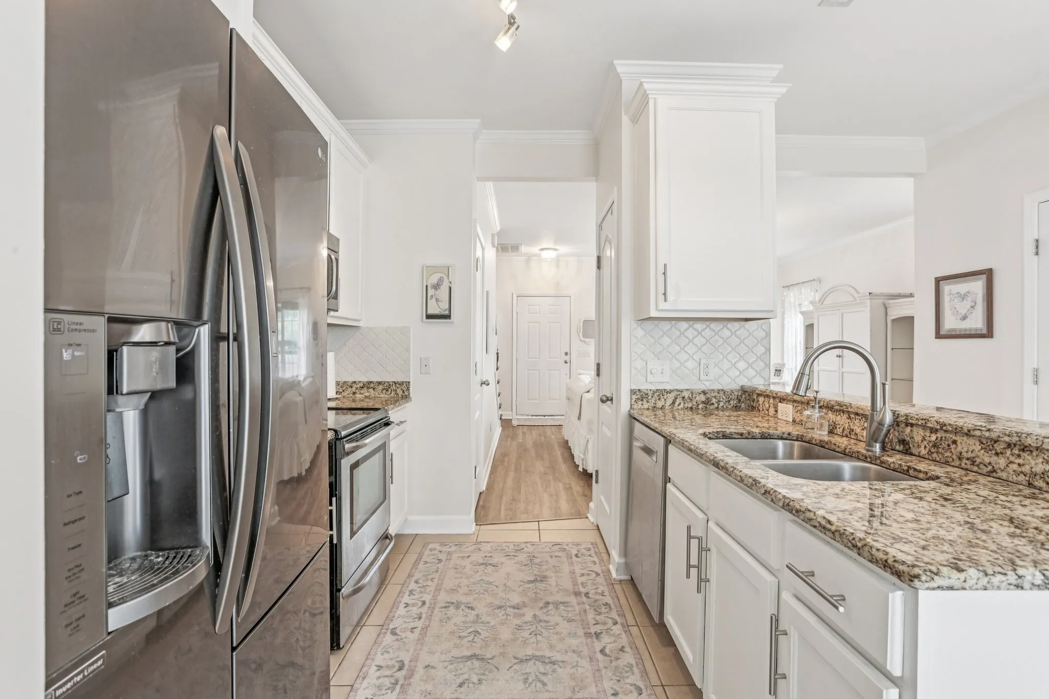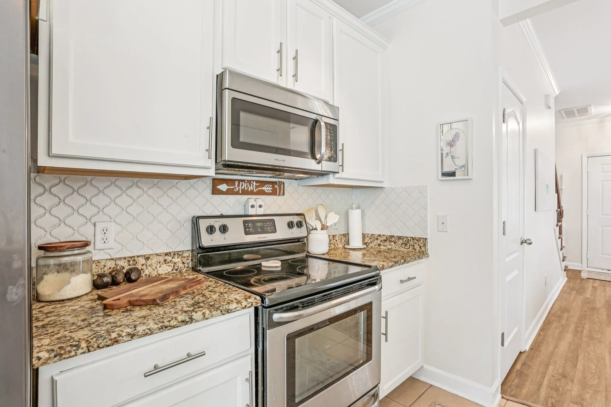 The main level features beautiful flooring throughout, adding warmth and character, while the modern kitchen boasts stainless steel appliances, granite countertops, and plenty of space for cooking and entertaining. Upstairs, you’ll find three bedrooms, including a spacious primary suite with an en-suite bath and two closets.