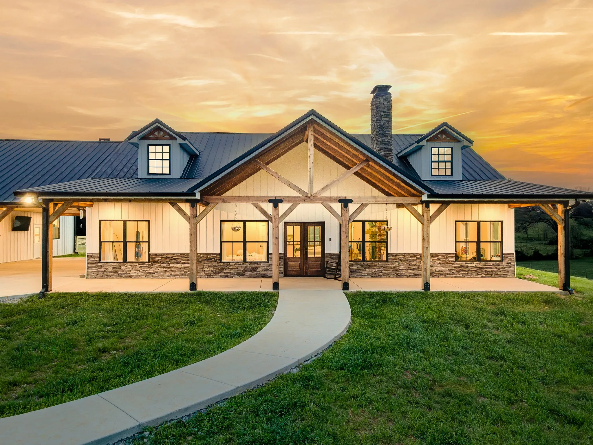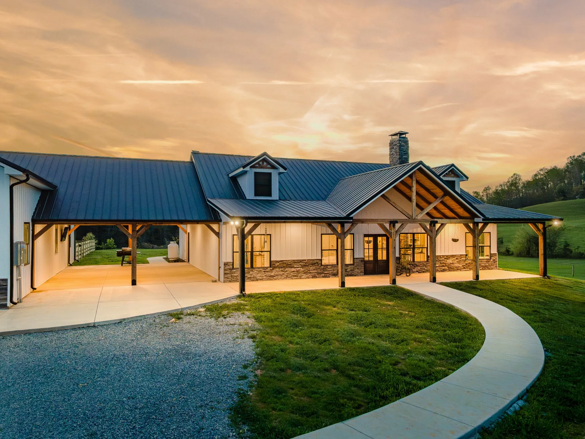 Welcome to this gorgeous 2700sqft home on 5.5 acres of level land! The home features 3BD, 2.5BA, kitchen has large island, ample amount of custom cabinets from floor to ceiling and butcherblock countertops, tiled backsplash, stainless steel appliances, with drop-in gas cook range, Butler’s pantry, living room has rock gas-log fireplace to the ceiling with built-in bookshelves, primary bedroom/suite has walk-in closet and primary bath has custom tiled shower, double sinks, large bonus room on 2nd floor, spacious laundry/mudroom with entrance from a 24×35 breezeway for entertaining! Enjoy these fall mornings under the covered front and back porches with a hot cup of coffee! A nice country living with picturesque views and no neighbors in sight! Also included is 2-car attached garage with over-sized doors! Fence-in area for your furry friends! This dream property also includes a 40×60 shop, 24×60 lean-to, 400 amp service (house is 200 amp and shop is 200 amp), tankless water heater, Starlink high speed internet (work remote), 12 minutes to I-65 at exit 22, 15 minutes to Lewisburg and 15 minutes to Fayetteville, and so much more! Let’s schedule your private tour today! Property to be survived off from bigger tract.