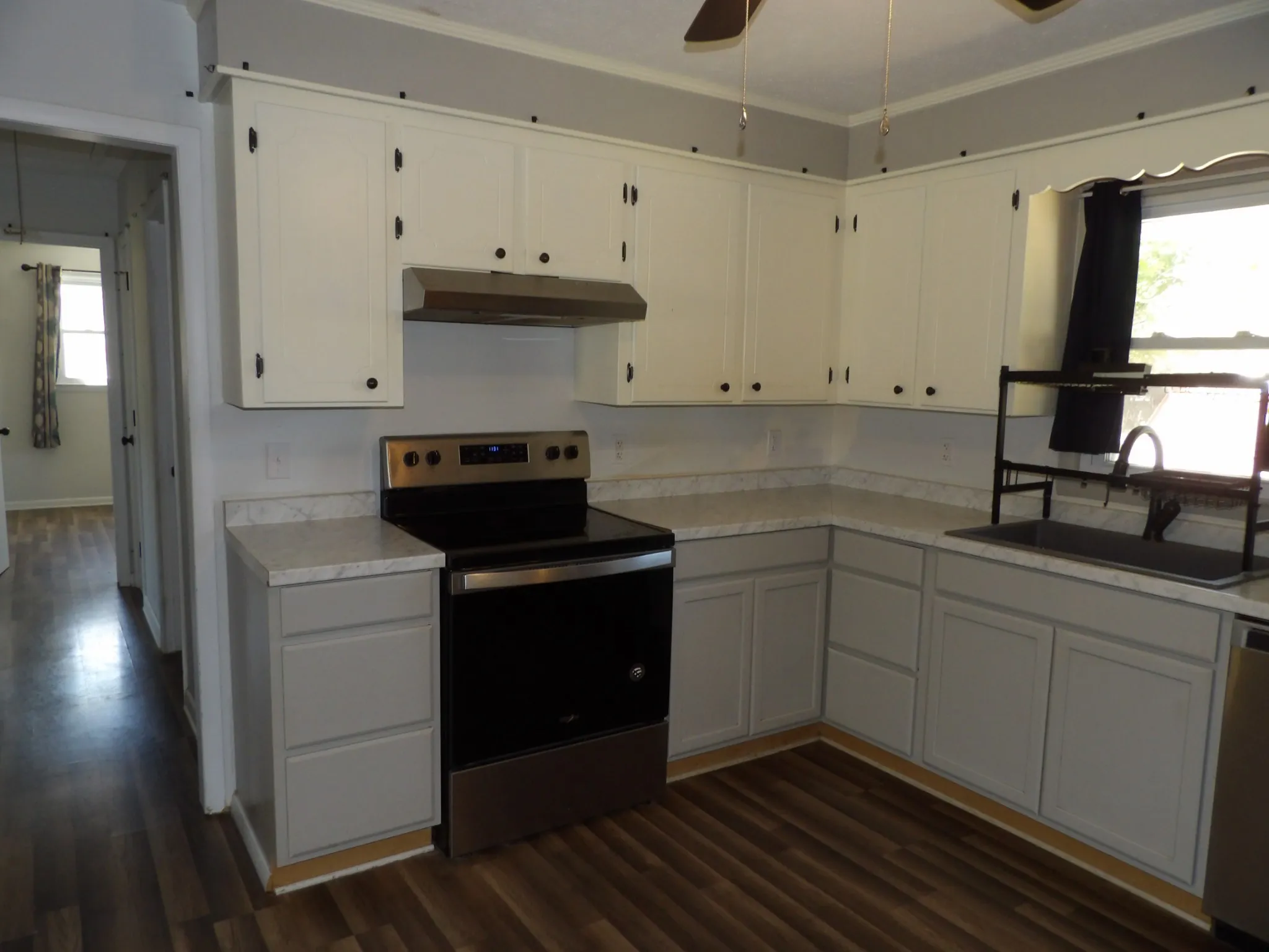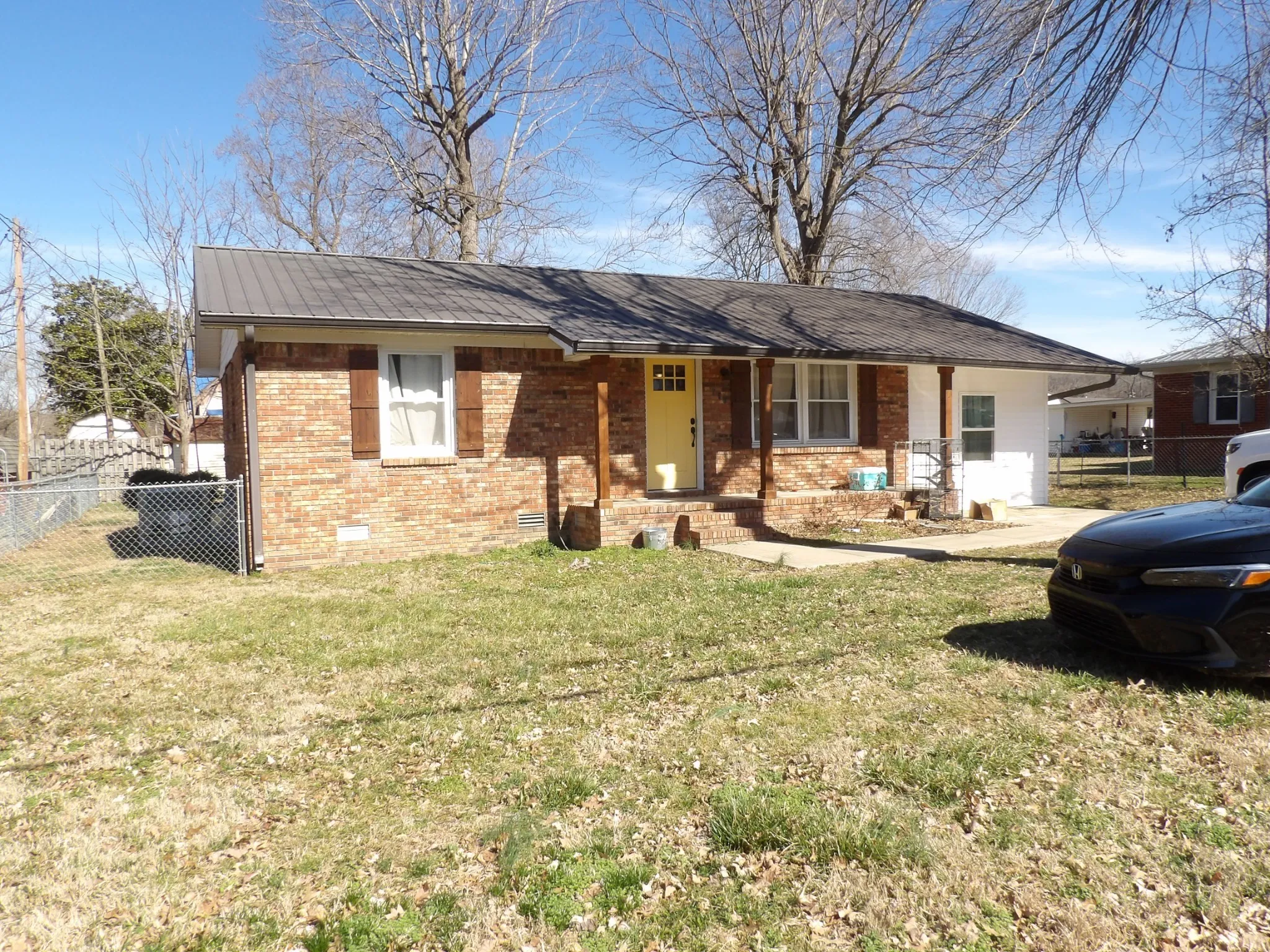 Cute as can be. This brick home is vacant and ready to move in. It is located minutes to down town so you can walk any where you need to go. It has 2 bedrooms and 1 bath, nice size living room, kitchen with eating area and a new built addition which could be used for a den or possibly another bedroom with the addition of a closet. The inside has been updated. The kitchen is nice with practically new appliances. There is a covered front porch and a chain link fence in the back for children or pets. No carpet in the house, laminate throughout for easy cleaning. Utility area with one step down to the new addition.