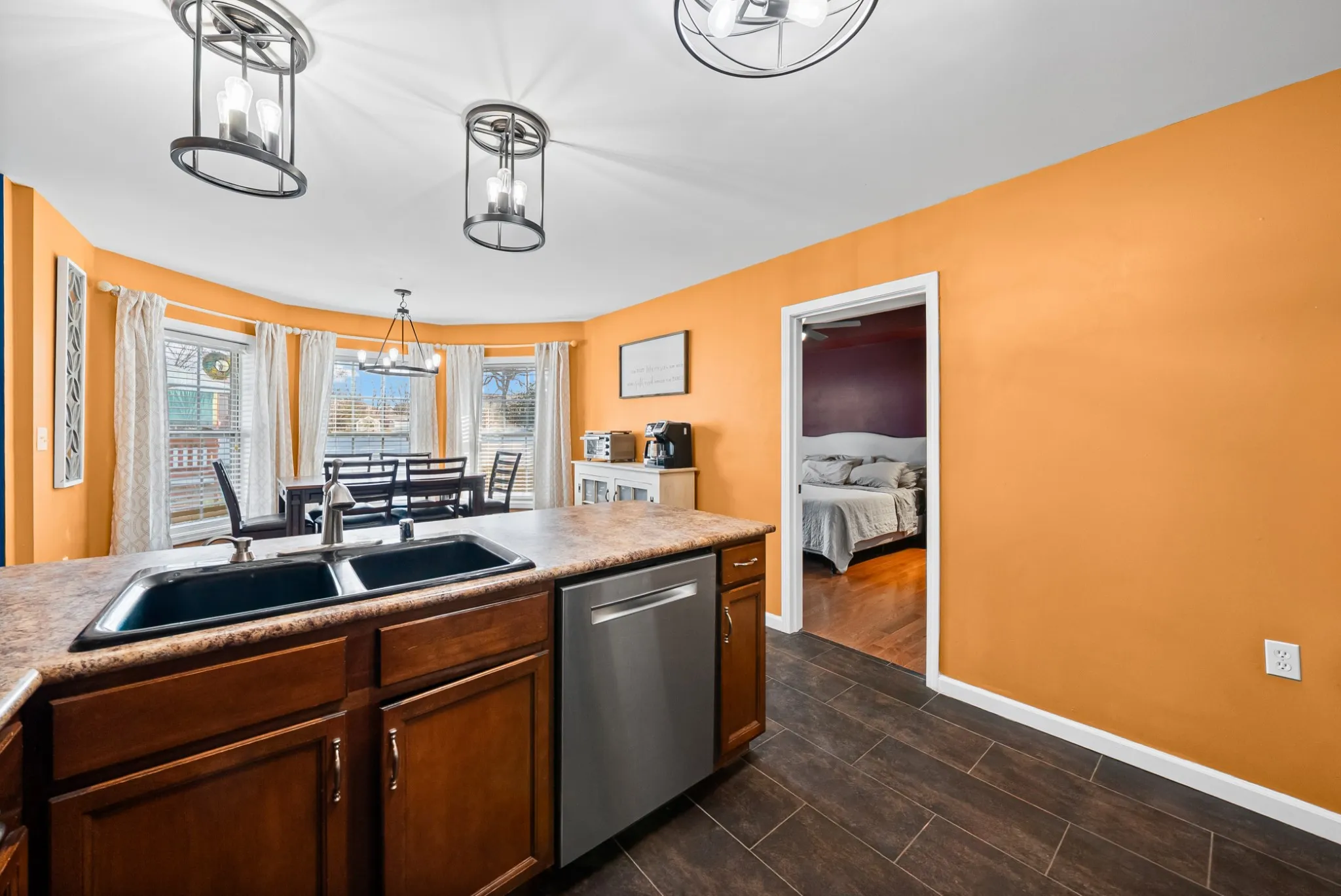 Step into the inviting living room with a vaulted ceiling, creating an open and airy feel that’s perfect for relaxing or entertaining. The large kitchen offers plenty of counter space and cabinetry—ideal for cooking, dining, and gathering with loved ones.