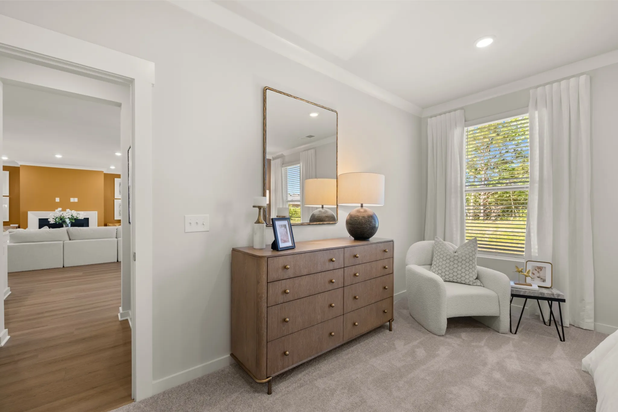 LOT #150 – Choral floorplan. This single-story home shares an open layout between the kitchen, nook and family room for easy entertaining and access to the covered patio for outdoor relaxation. A separate formal dining room is perfect for hosting dinner parties with loved ones. A luxe owner’s suite is in a rear corner of the home with an en-suite bathroom and walk-in closet, while three secondary bedrooms are at the front of the home, one with an en-suite bathroom, ideal for overnight guests. *Images from a furnished model of this home. Actual configuration and features may vary.