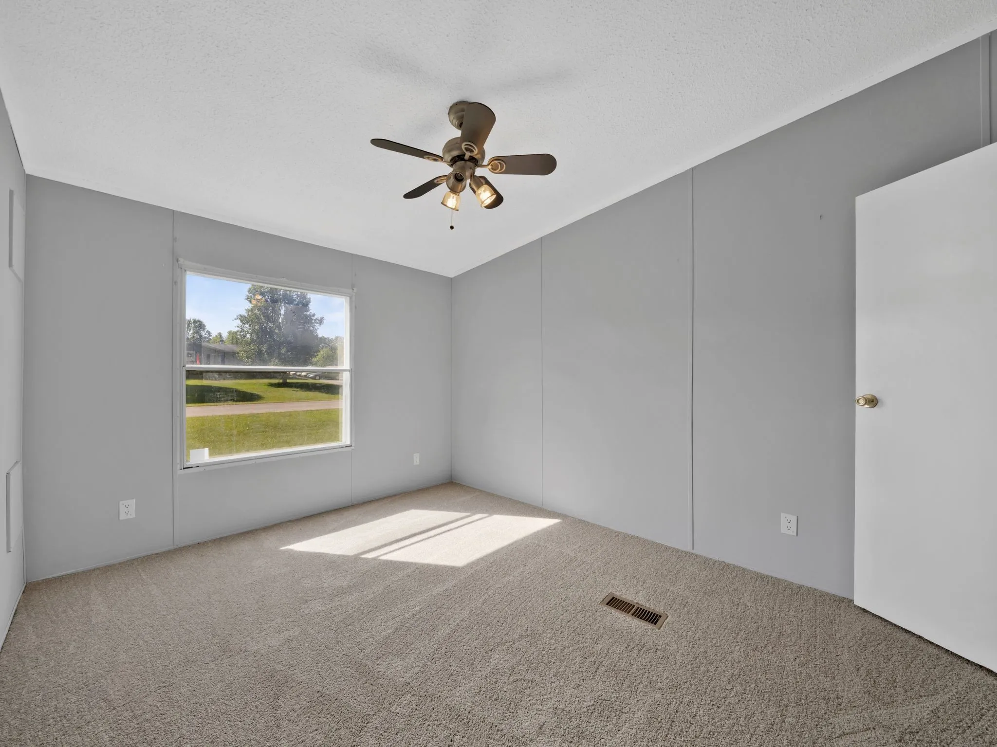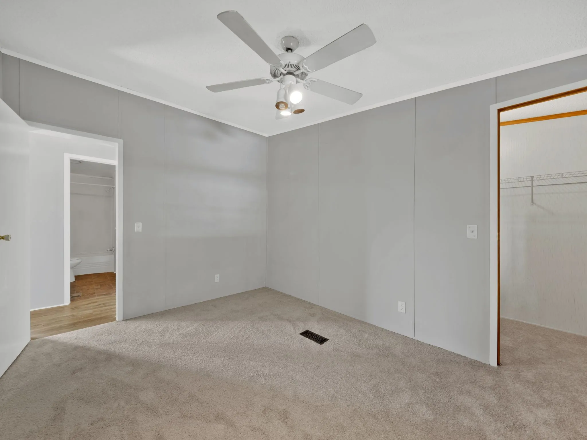 The newly carpeted Master bedroom bed room is located to the right of the home’s foyer and has a private master bathroom.