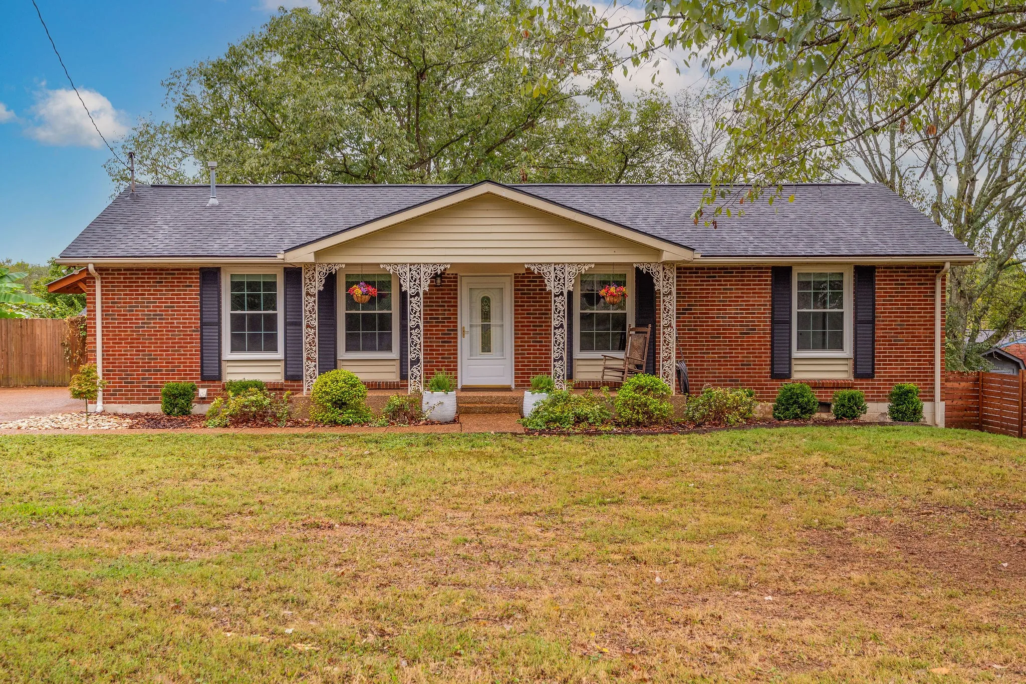 Step into this classic ranch home located in Goodlettsville city limits! A welcoming front porch, covered back deck, and spacious yard with mature trees set the scene before you even walk inside. Hardwood floors and new tile bring a fresh feel throughout. The kitchen features custom cabinets, and the bathroom offers a tiled walk-out shower. With three bedrooms, there’s space for family, guests, or a home office. The fenced backyard offers a raised garden bed, two storage sheds, and plenty of open space to enjoy, with wildlife often seen in the area. Extra driveway parking adds convenience. Recent improvements include a new roof, new tile, and a dining room light fixture. The home is move-in ready with refrigerator, washer, dryer, blinds, and outdoor grill included. Conveniently located near I-65, area parks, shopping, and dining — and just 20 minutes from downtown Nashville, this home combines comfort, convenience, and outdoor living.