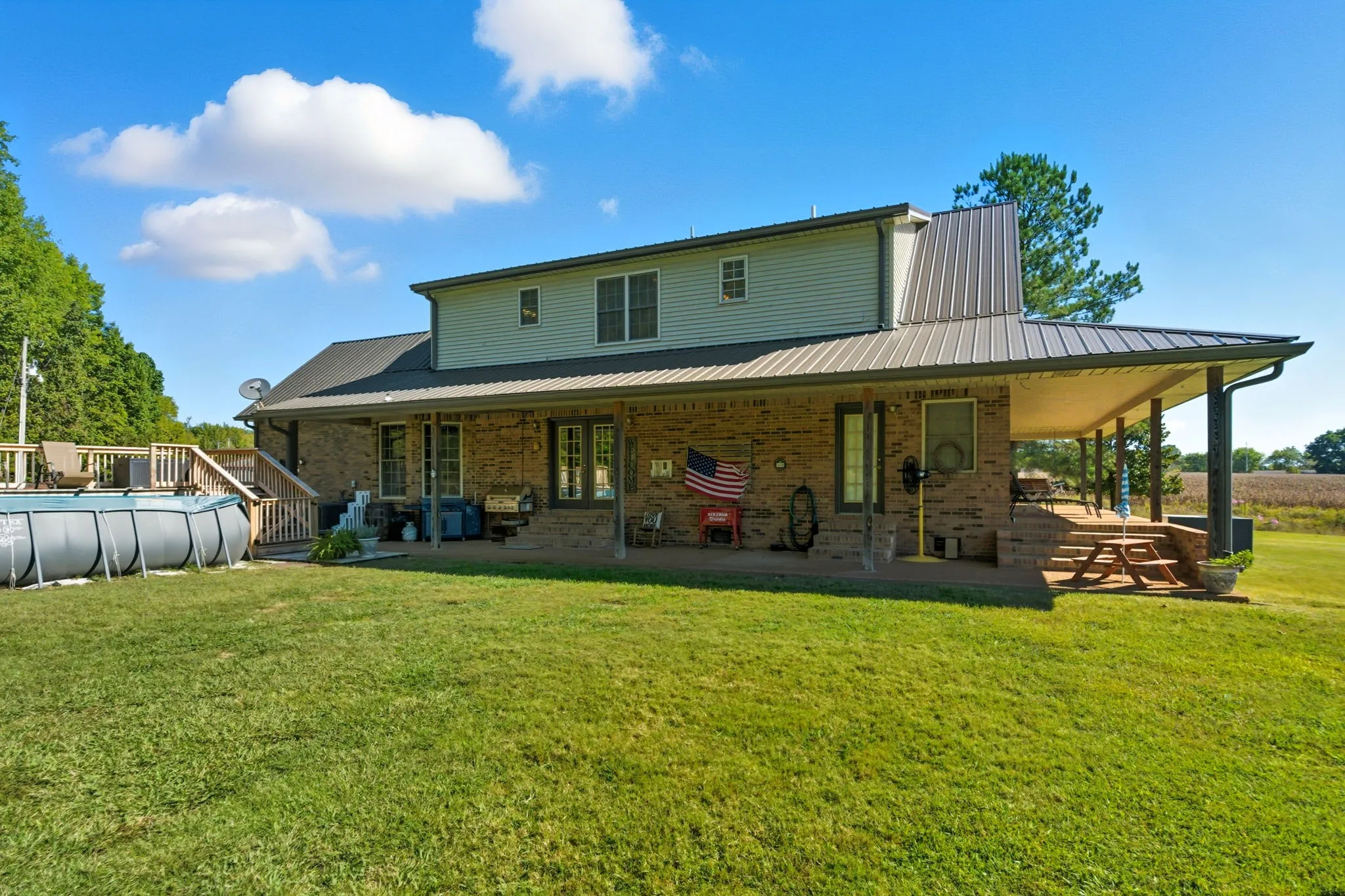 Enjoy outdoor living with a covered back patio, deck, and above-ground pool. A 24×50 insulated detached shop includes 3 overhead doors and an attached studio apartment, with a bathroom and laundry area. There is a separate septic system for the shop and studio apartment.