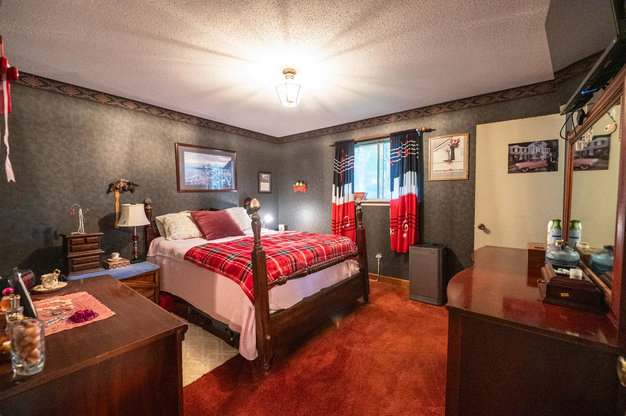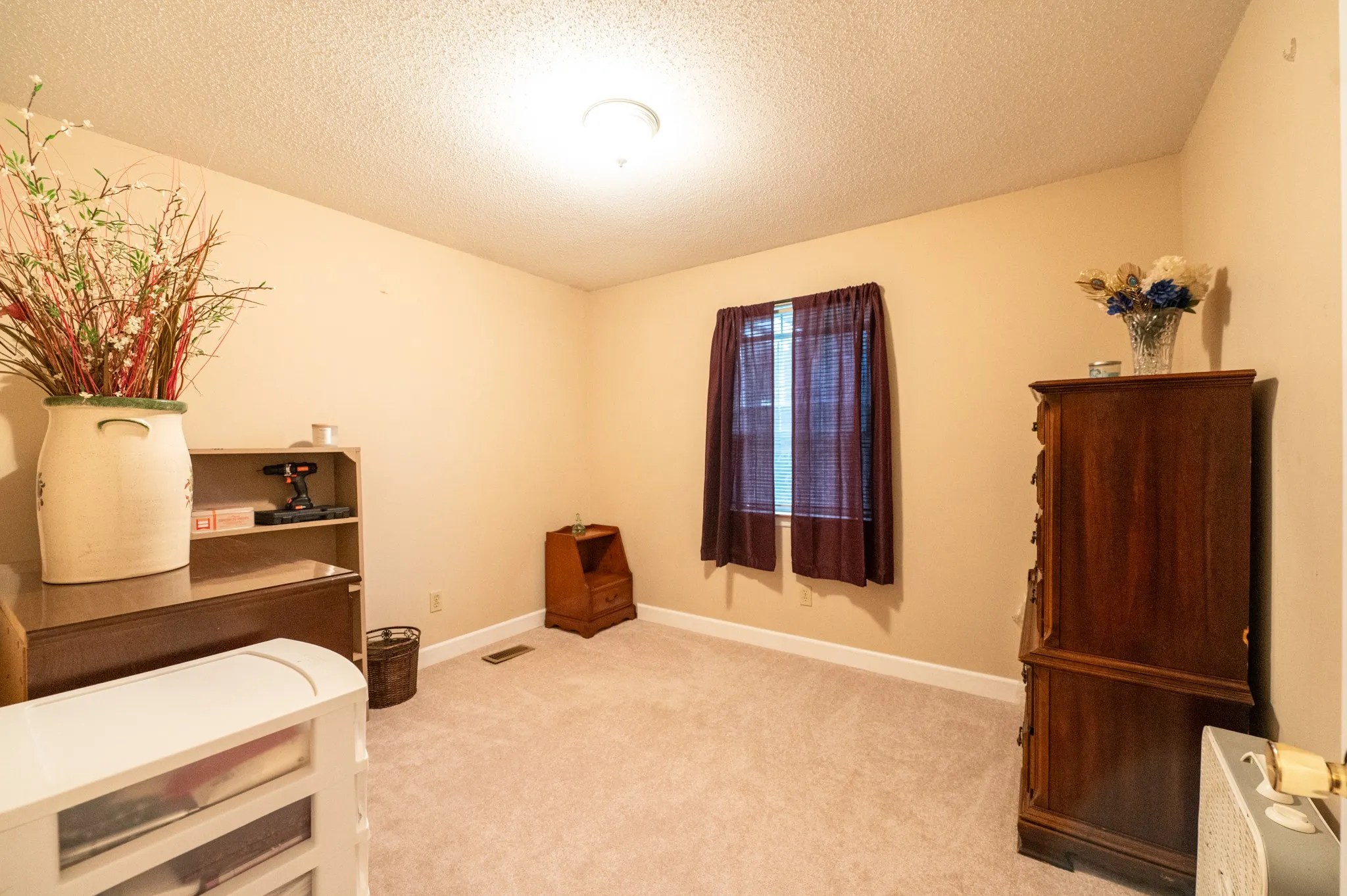 All three bedrooms are nicely sized, with one featuring a unique octagon window adding extra charm. The downstairs den offers a warm retreat with wood paneling and a brick wood-burning fireplace, ideal for cozy evenings at home. Outside, the level two-acre lot is a birdwatcher’s paradise and provides plenty of space for gardening, pets, or play. An outbuilding in the backyard adds extra storage, and the attached two-car garage ensures convenience.