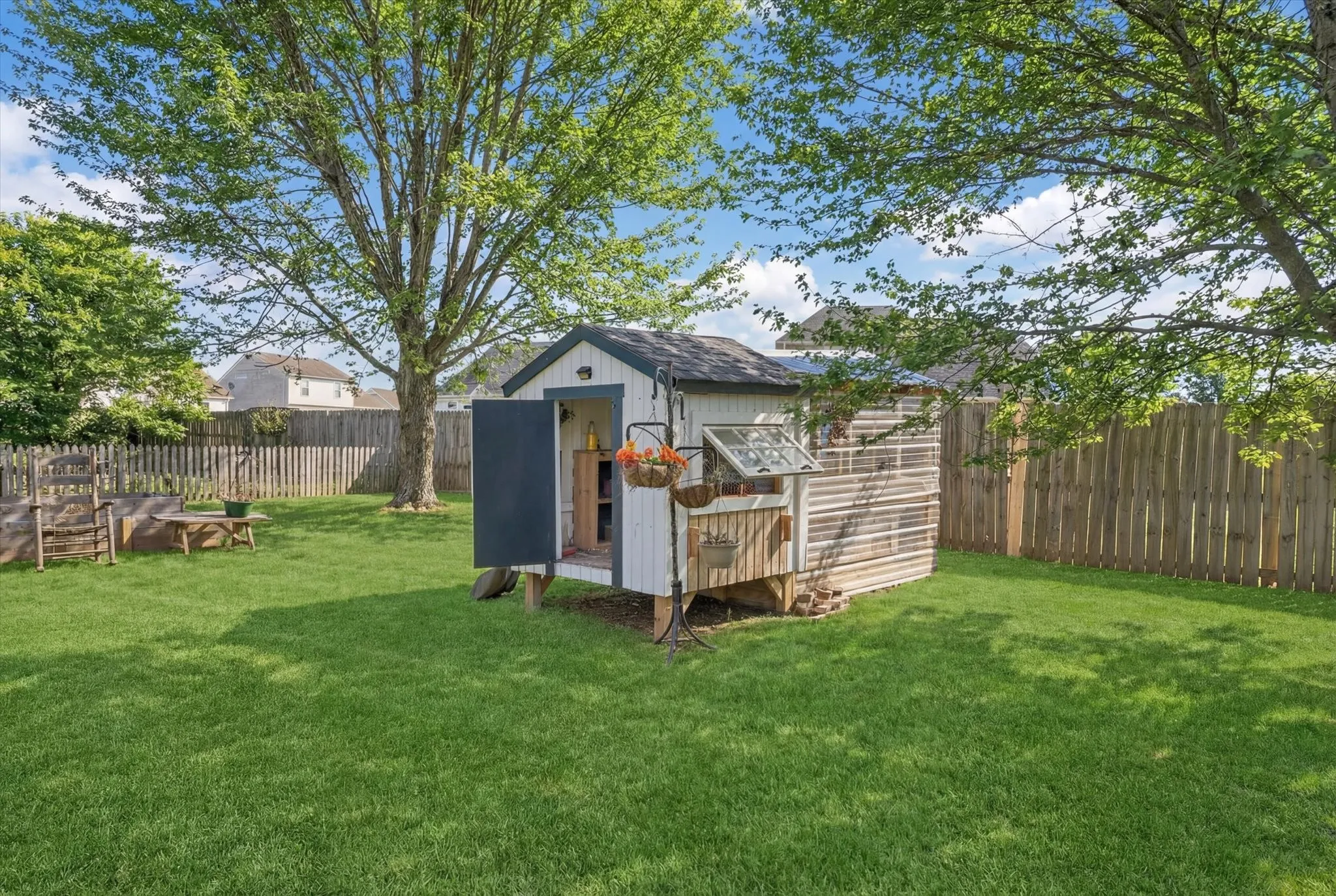 Welcome home to this beautifully updated property offering comfort, style, and space in every corner. Enjoy peace of mind with a brand-new HVAC unit and a recently inspected roof for preventative maintenance. Inside features all new faucets, light fixtures, countertops, and a new dishwasher, along with fresh paint throughout. Beautiful hardwood floors upstairs and new laminate downstairs create a warm, inviting feel. Step outside to a massive, fenced yard perfect for entertaining, backyard adventures, from family fun to pets at play. The property includes six mature fruit-producing trees, two 4×12 cedar garden beds, a chicken coop with two enclosed runs, and a 5×5 storage shed that stays. Modern updates, outdoor charm, and move-in readiness make this home a must-see!