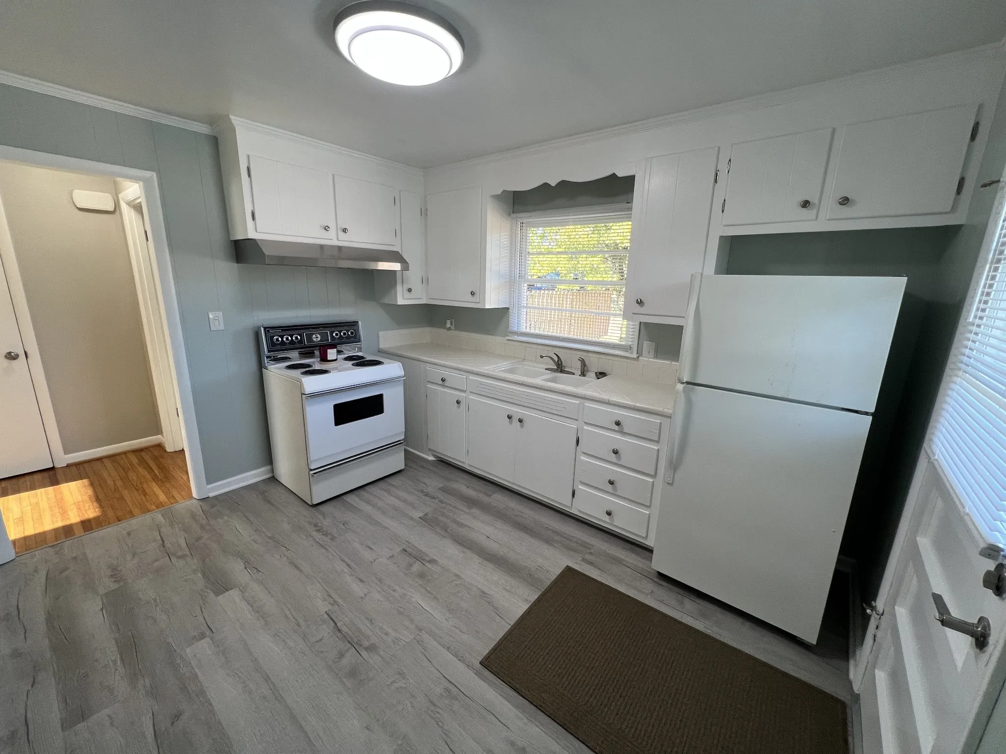 The single bedroom’s front-facing windows provide a glimpse of Old Hickory Lake, and the all-brick exterior paired with a generous backyard adds privacy and outdoor enjoyment. Inside, the home features a welcoming layout with refinished oak hardwood flooring, durable vinyl in the eat-in kitchen, and essential appliances including an electric range, oven, and refrigerator. The bright living room and generously sized bedroom make the space feel warm, functional, and inviting.