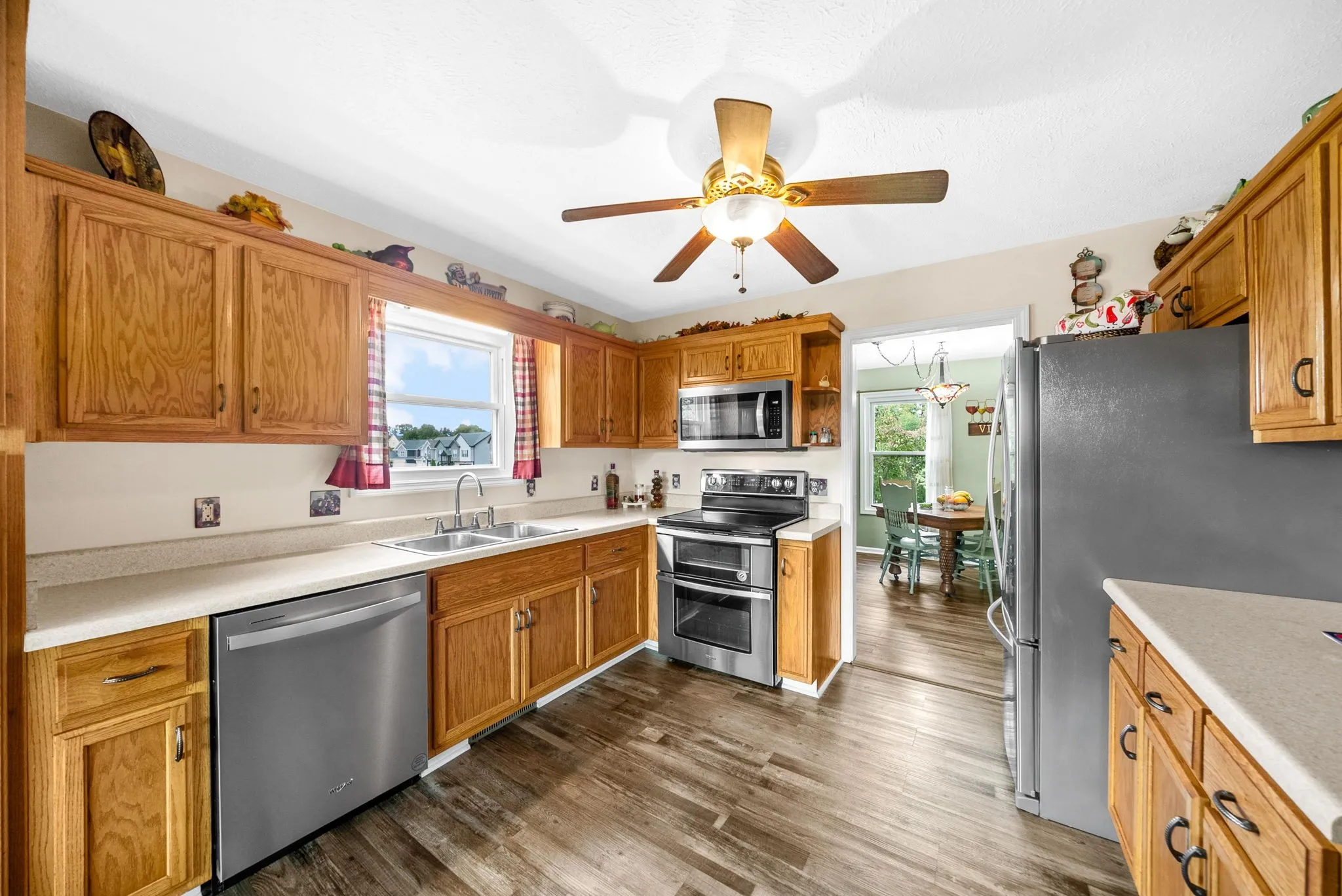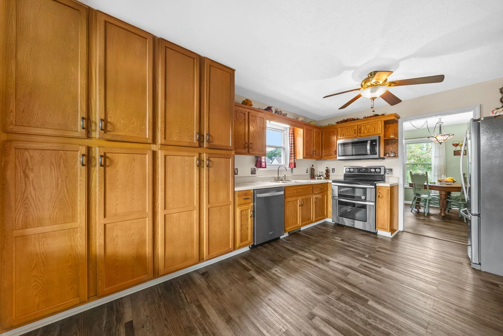 Inside, you’ll find new kitchen appliances and a main-level ADA-compliant bathroom with widened door frames for accessibility. The HVAC system was replaced in 2016 and features infrared allergy control, while the tankless electric water heater adds both convenience and efficiency.