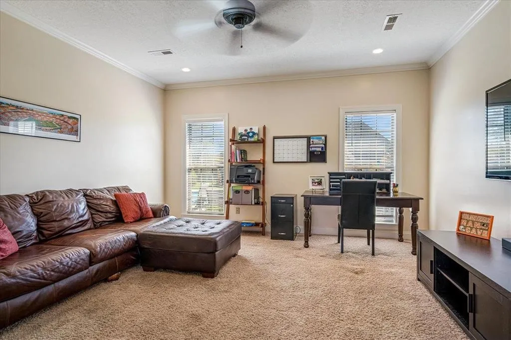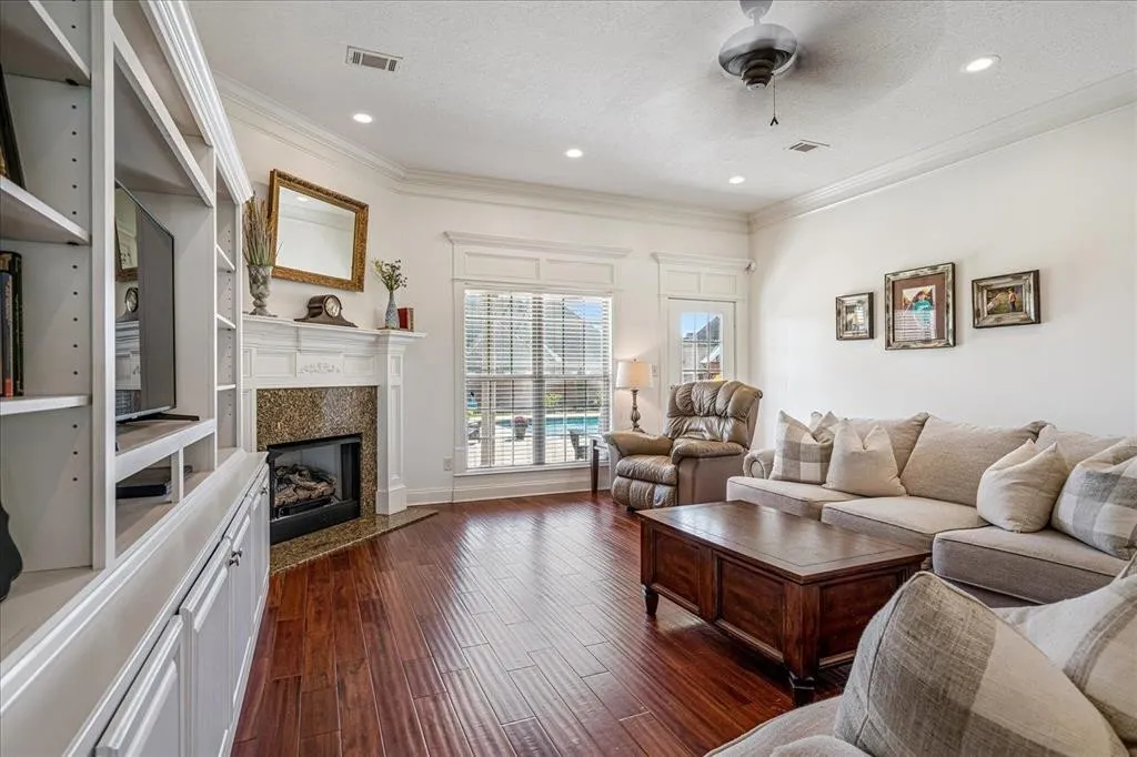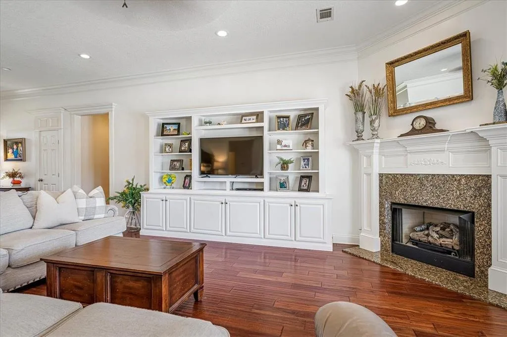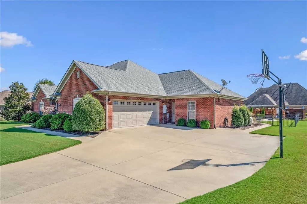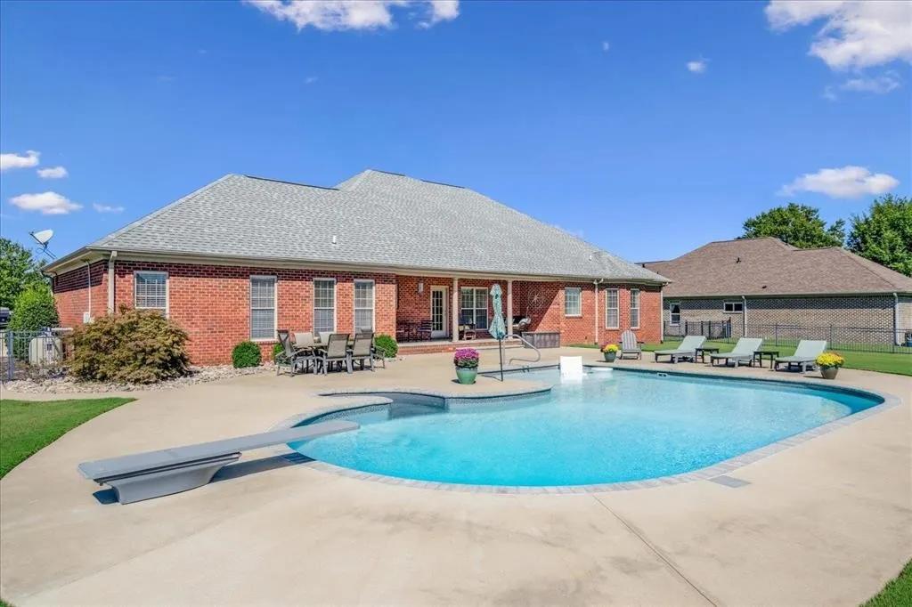 Exquisite Brick Home in Prestigious “The Farms” Subdivision This stunning 4-bedroom, 3.5-bath brick beauty, offering over 3,000 sq. ft of refined living space in one of the area’s most sought-after neighborhoods .Perfectly designed for comfort, entertaining, and everyday luxury, this home boasts two spacious primary suites, each with its own ensuite bath featuring double vanities, separate showers, and relaxing jetted tubs — ideal for multigenerational living or hosting guests in style. Step into a world of elegance with a formal entryway, crown molding throughout, and gorgeous hardwood flooring that flows seamlessly through the formal dining & great room which hosts fireplace/gas logs. The Gourmet kitchen is a dream complete with granite countertops, island, breakfast bar, pantry, and a cozy hearth room just off the sunlit breakfast area. Private backyard oasis featuring a custom saltwater in-ground pool, covered porch.Perfect balance of luxury & practicality.