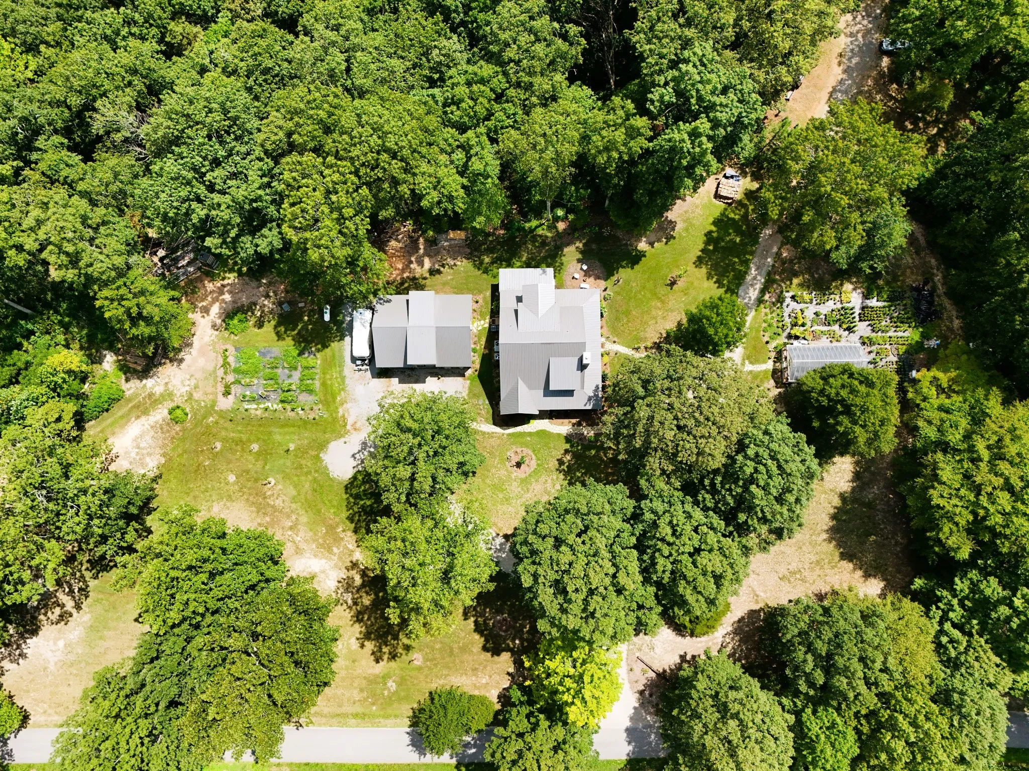 The property is equally impressive outdoors with a durable metal roof, oversized 3-car detached garage/workshop, greenhouse, covered pavilion, and two camper hookups—ideal for guests or weekend gatherings. High-speed fiber internet ensures you can work, stream, and stay connected from your peaceful country escape.\n