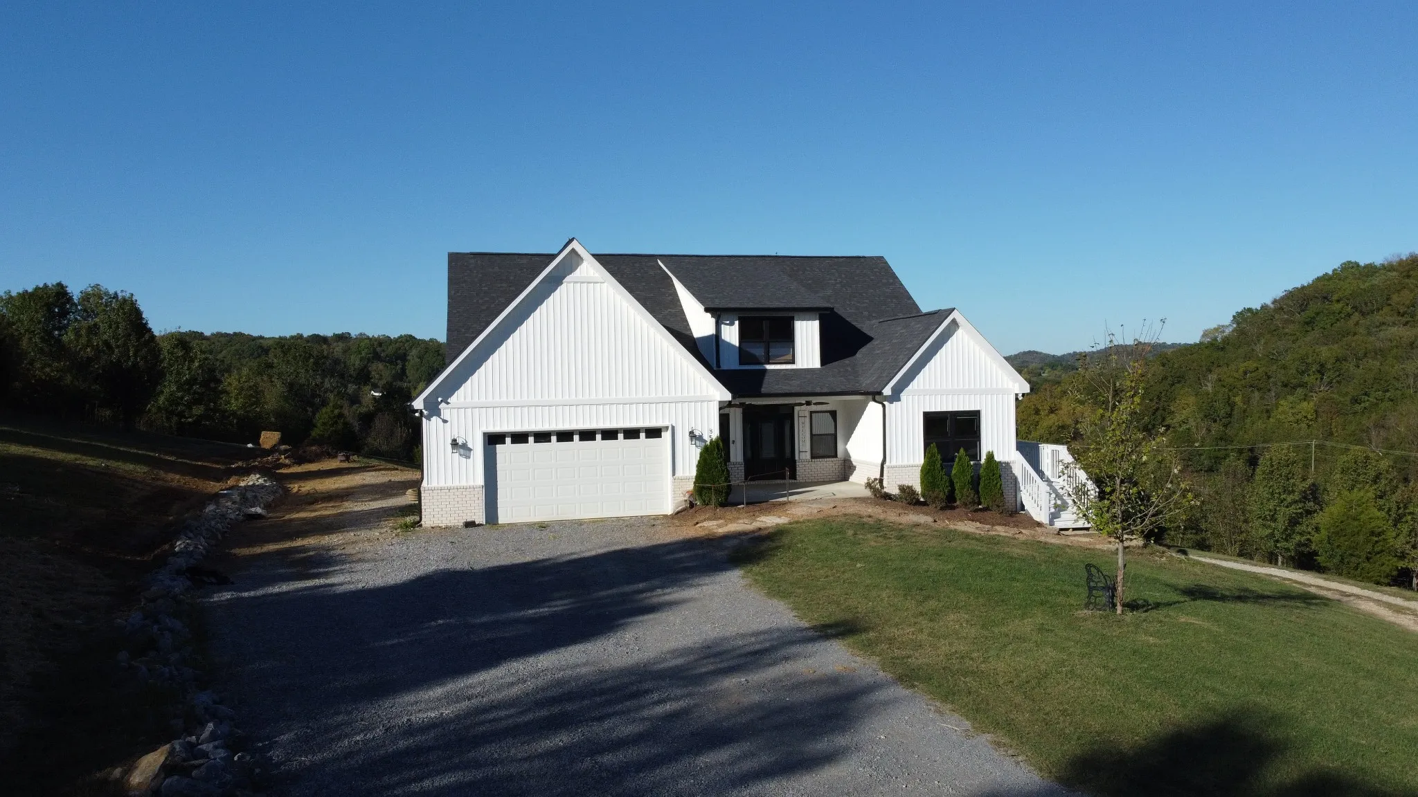 Enjoy this cozy four year old Modern Farmhouse, country retreat on 4.9 acres, just off I-65 and 25 minutes to downtown Nashville. 4 BR, 4.5 BA, open floor plan with high ceilings, double-sided wood burning fireplace to the living room and master, kitchen island, finished downstairs basement (potential mother-in-law suite), wrap-around oversized deck, and rolling hill views. Minutes to dining and shopping. See Video Tour Link
