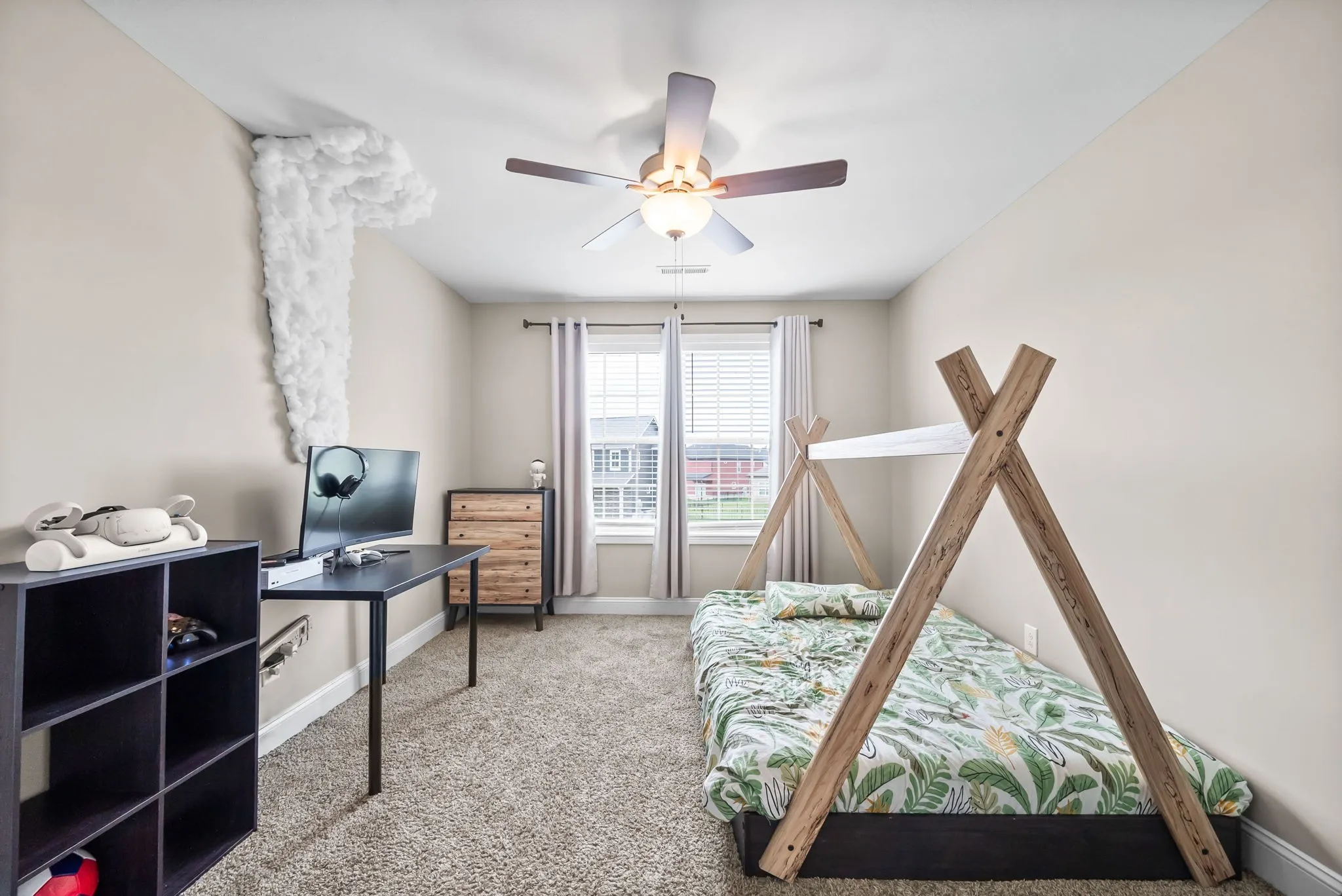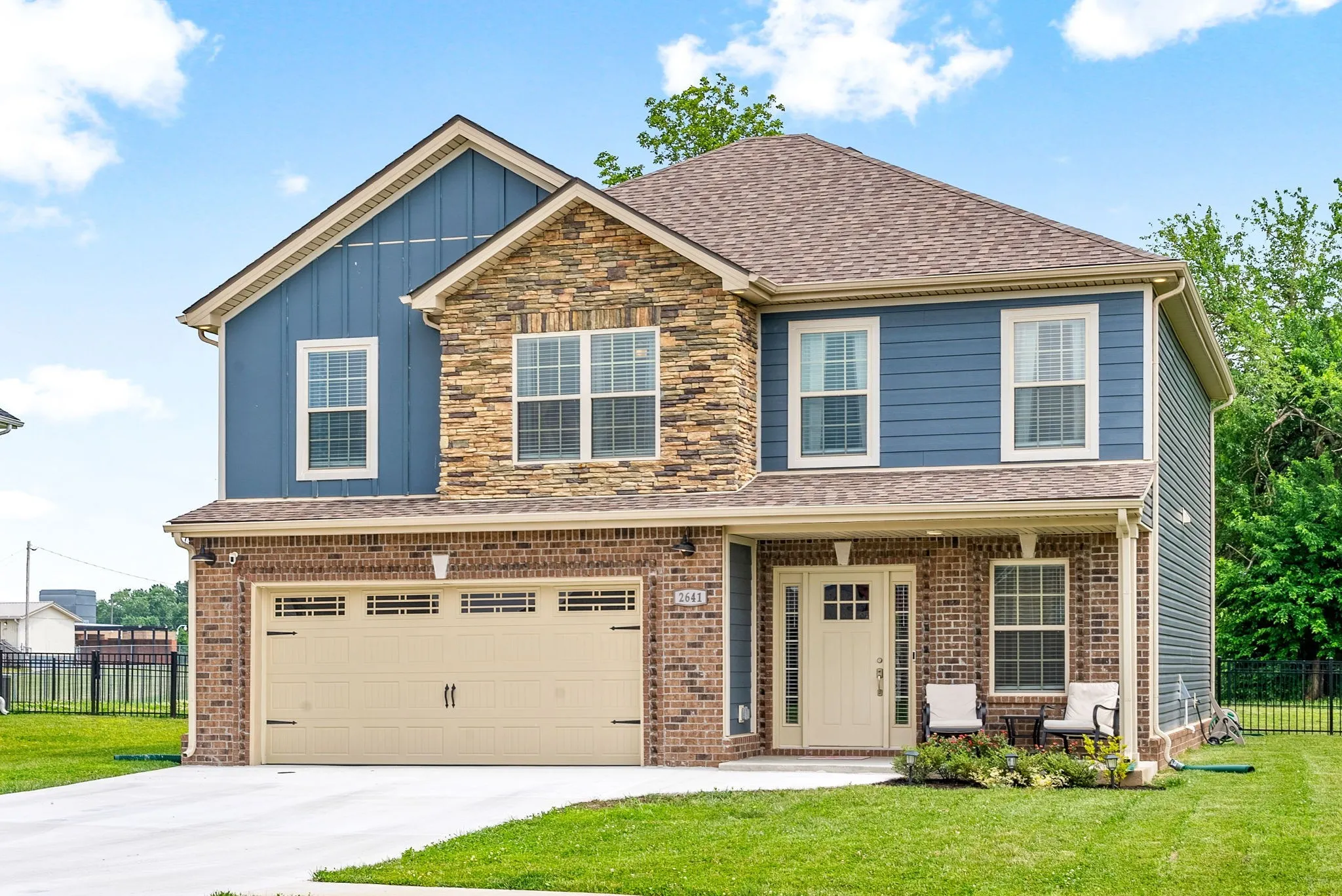 Welcome to 2641 Rafiki Dr! A beautifully maintained 5 bedroom, 2.5 bathroom home nestled in a peaceful Clarksville neighborhood with no backyard neighbors! Built in 2022, this spacious 2,221 sq ft home offers modern finishes, a thoughtful layout, and the perfect blend of comfort and style. The open-concept main level is ideal for everyday living and entertaining, while all five bedrooms provide flexibility for guests, a home office, or a growing household. Enjoy a fully fenced backyard and a level lot, perfect for pets, play, or outdoor gatherings. Located in a quiet community with easy access to local conveniences, this home is move-in ready and waiting for you!