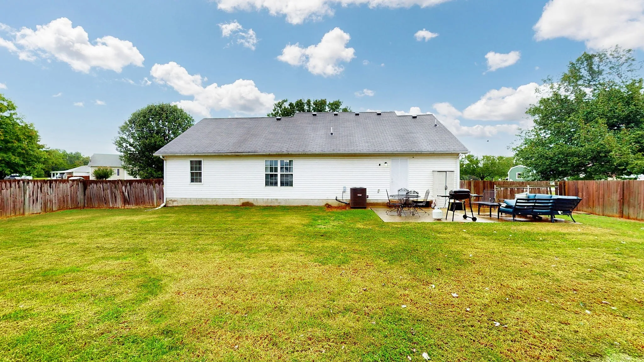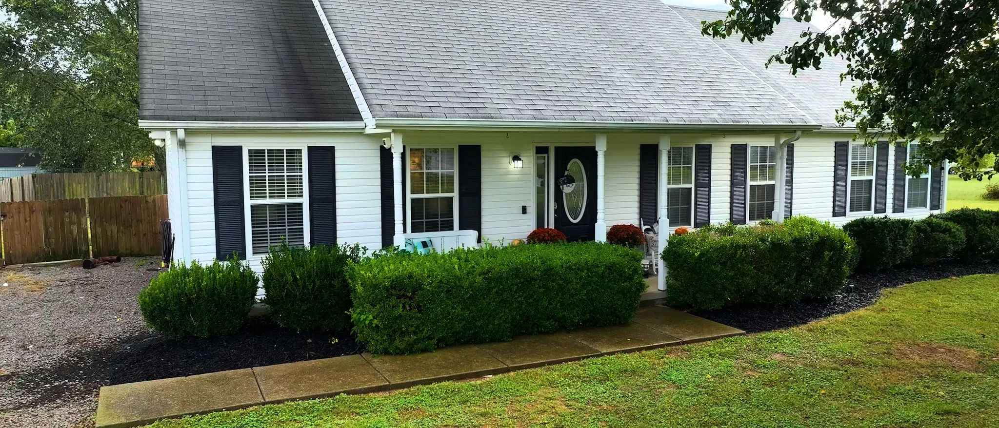 Charming 3BR, 2BA Home on Spacious Lot – No City Taxes! This beautifully maintained home offers a welcoming open floor plan with laminate flooring throughout and tile in wet areas. Enjoy stylish touches like shiplap accents, vaulted ceilings, and sleek black appliances in the kitchen. Step outside to a covered front porch and a fully fenced yard on over half an acre, featuring mature trees that provide shade. Located in an area eligible for 100% financing, this property offers the perfect blend of comfort, space, and convenience. Does feature an additional room with closet but home only has a 3BR perk site. Easy access to shopping, dining, and more make this home an exceptional value!