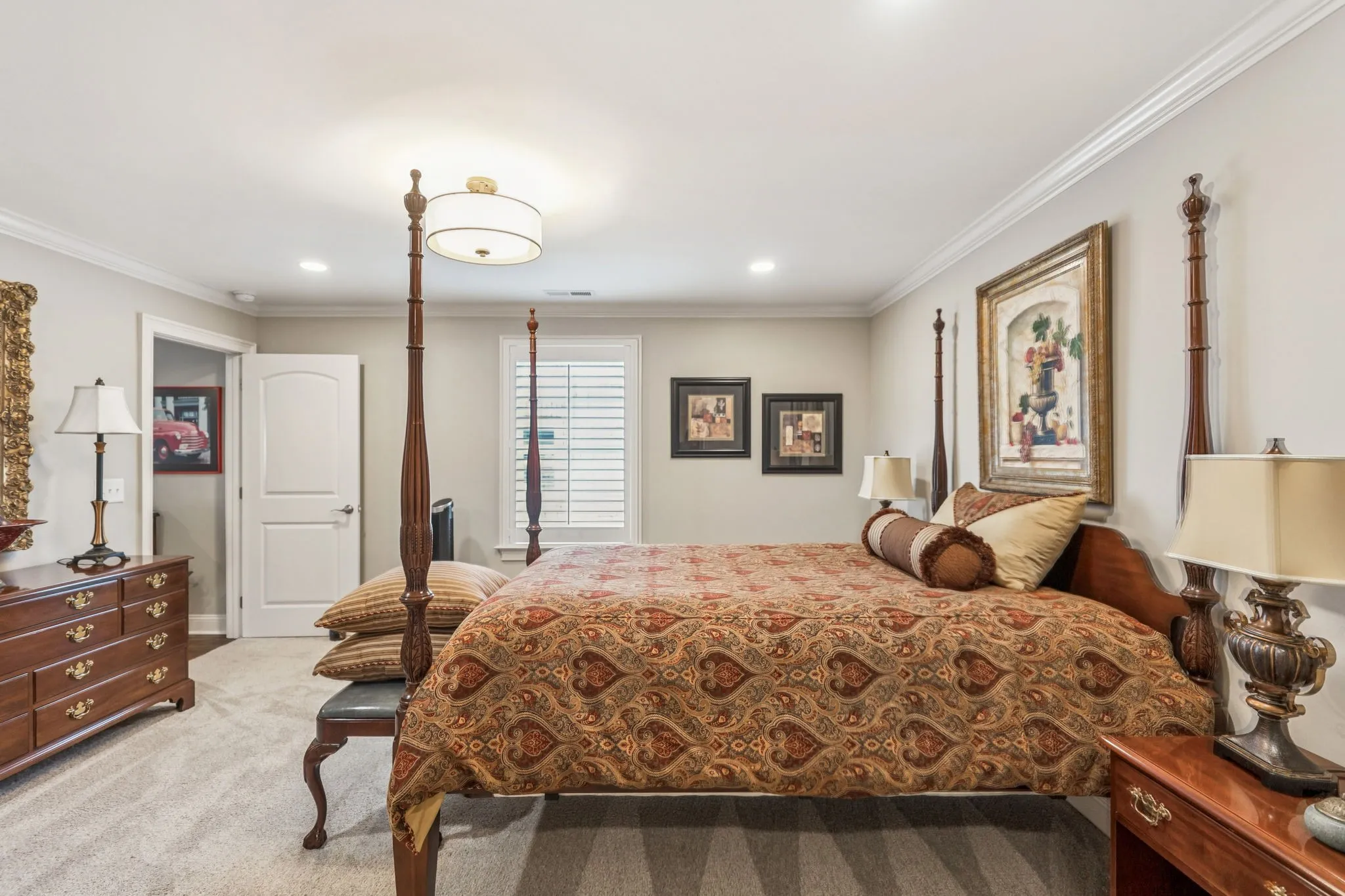 Stunningly luxurious home, beautiful upgrades at every turn! Outdoor features a lovely private rear covered porch, fenced backyard, gas lanterns. Interior includes quartz and granite counters, wood beams in living room, interior wood shutters throughout, custom primary suite with stunning zero-entry shower. Large bonus room upstairs features dry bar. Lovely quiet Poplar Grove is an exclusive and private community in north Murfreesboro with pave stone streets. Mowing, mulching, landscaping maintenance, and irrigation handled by community HOA. Community features a pavilion and pickleball court, you don’t want to miss this one!
