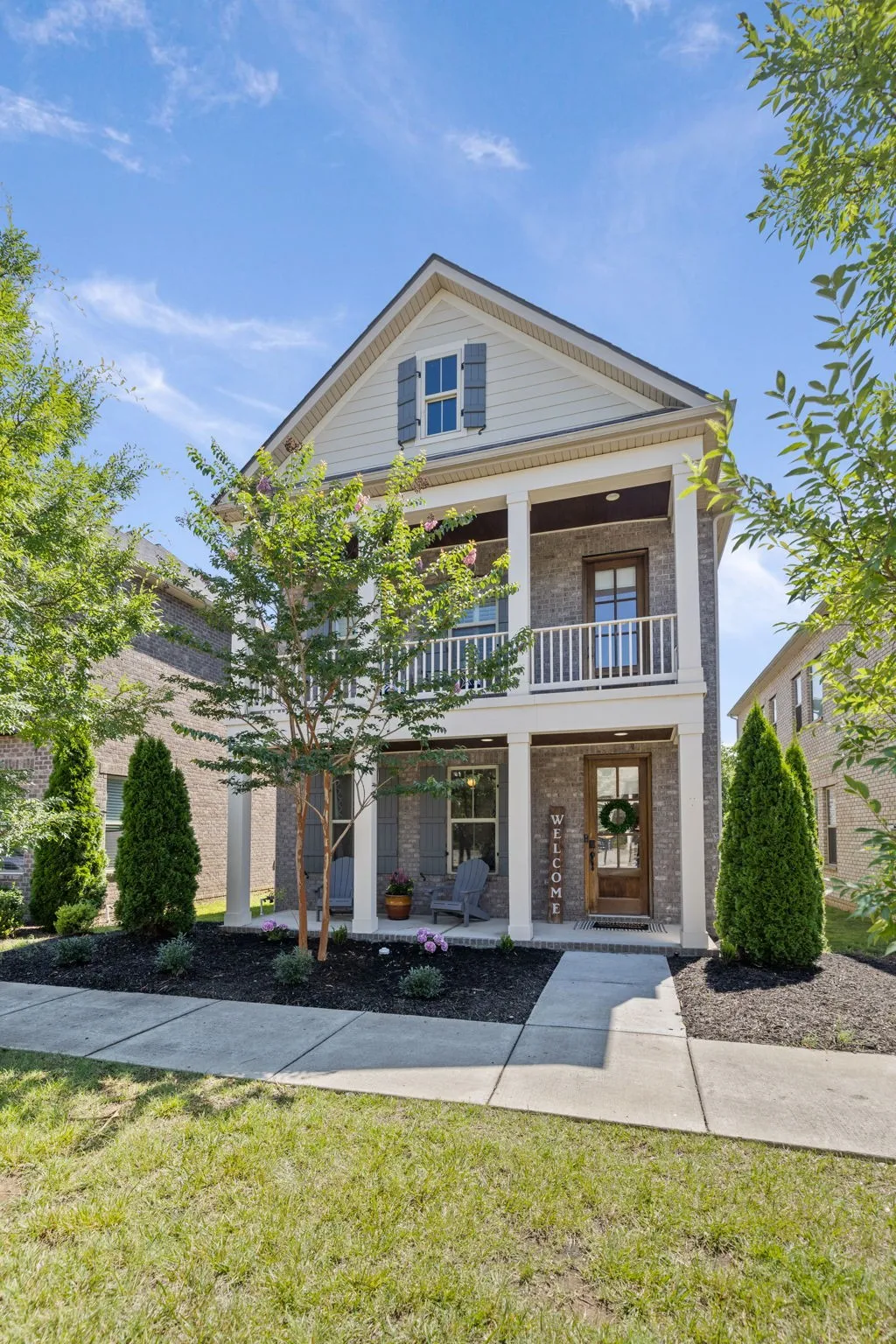 ASSUMABLE 4.375% loan, subject to loan approval. Premium Lots – NO NEIGHBORS BEHIND YOU – backs up to tree-line/walking trails. Adorable 2-story home offers perfect blend of comfort, convenience & lifestyle. Beautifully crafted with crown molding and tasteful finishes. Interior shutters accent this classic home. No neighbors behind you – premium lot backs up to green common space. Front covered porch with romantic 2nd-story balcony. Convenient location. Walkable to a night out at the movies, dinner, or your favorite shops. Downstairs open concept with hardwood floors, gas fireplace and seamless flow to the eat-in-kitchen. The gourmet kitchen features granite countertops, stainless steel appliances, double oven, gas cooktop, built-in microwave, vent hood, pantry and designer cabinetry. All Bedrooms located upstairs with Large Primary Bedroom Suite-Generous Walk-in-Closet, plus 2 additional bedrooms, 2 full baths, a bonus room, and separate Laundry Rm. Easy built-in drop zone adjacent to Garage. Rear-entry attached garage accessed via private alley.. Wonderfully walkable to Greenways, Streets of Indian Lake Shopping Center, top-rated Restaurants, Coffee Shops, Theater & more. Additional Open Parking in rear driveway and on-street-unassigned spaces in front of property. Community Amenities: Kids Playground & Dog Park. Low-maintenance with most lawn maintenance performed by HOA. Seller concessions available – terms and conditions apply. Loan assumption – terms & conditions apply. Buyer/Buyer’s Agents to confirm all pertinent information. All information believed to be accurate but not guaranteed.