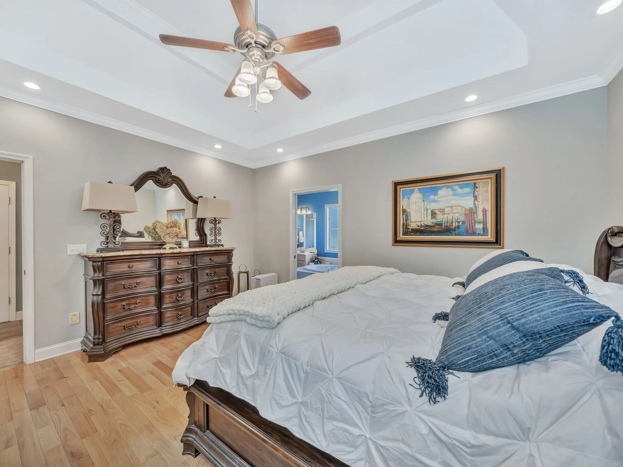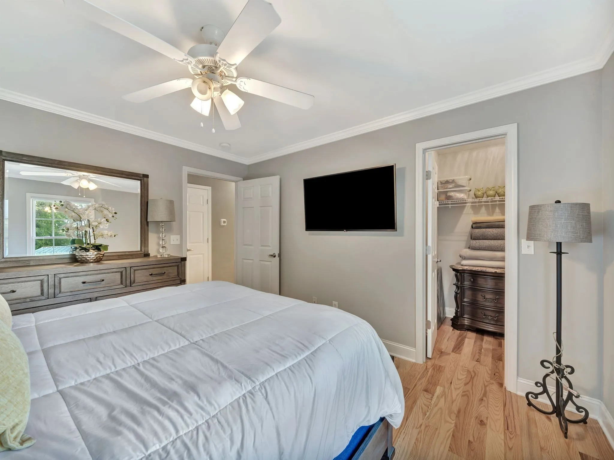 Step inside to find a bright, open floor plan with high ceilings, abundant natural light, and stunning hardwood floors throughout. The gourmet kitchen is a chef’s dream, featuring granite countertops, stainless steel appliances, a gas stove, tile backsplash, and ample counter space — perfect for cooking and entertaining. Elegant crown molding and designer colors add a touch of sophistication to every room. Feel at ease with a 3 year old roof and a 5 year old hvac unit.