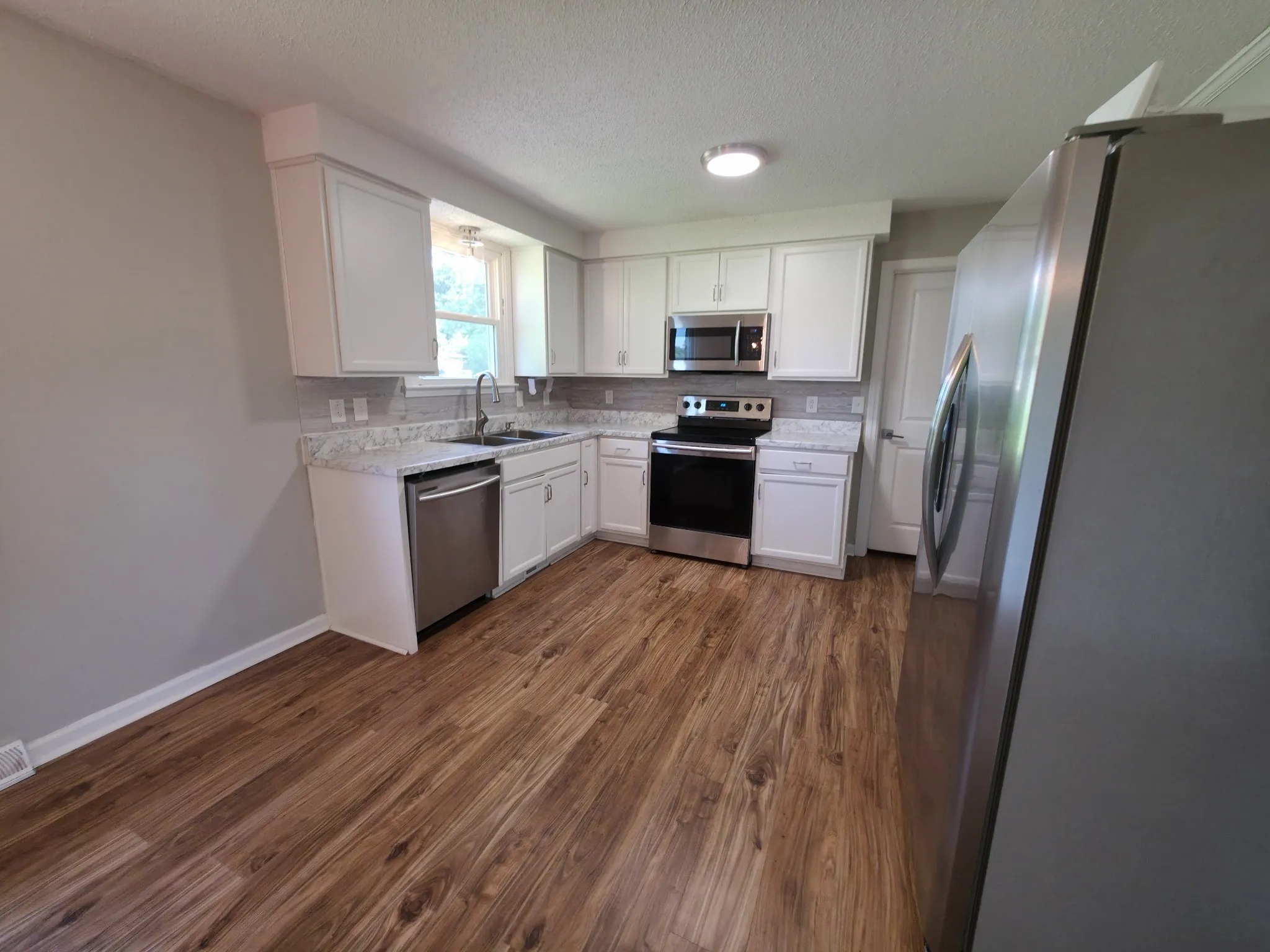 All brick ranch-style home located close to Fort Campbell and downtown Clarksville. Move-in ready! Full bath with XL shower & kitchen, white shaker style cabinets, stainless steel appliances, fresh paint, wood laminate flooring, back-up generator when power is lost, storage shed, and a large level fenced-in yard with plenty of space for kids &/or pets. Washer/Dryer.