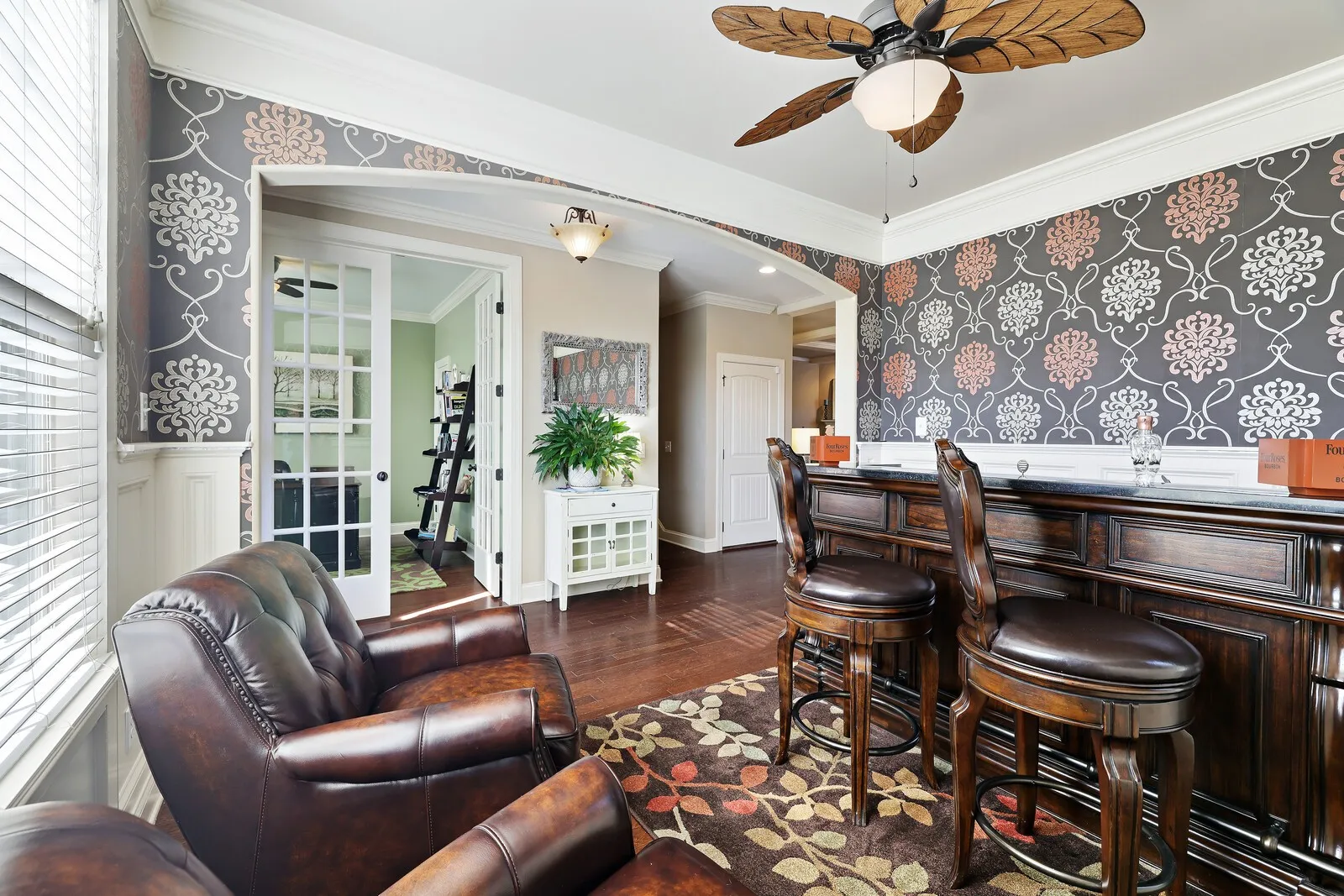 Downstairs includes a dedicated office space and a bar/study/dining room for flexible use.