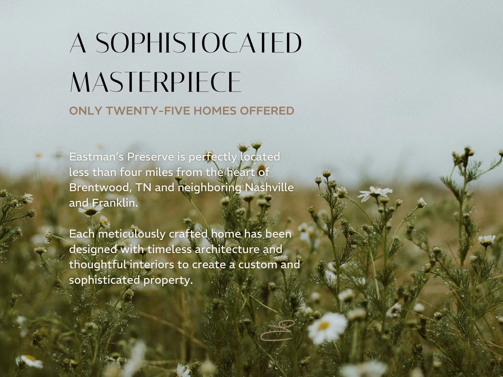 Amidst lush rolling hills, Eastman’s Preserve is situated in the heart of Brentwood and nestled on a perfectly planned thirty-one acre haven of beauty. Only 25 homes will be available. This home sits on a private, level lot in the back of the community. Designed by renowned architect Pfeffer Torode, this masterpiece boasts an immaculate master suite on the main level. The sprawling kitchen with Butler Pantry, breakfast room, and dining room provide all the space you need for entertaining and opens up into the great room so you can seamlessly host and enjoy your guests. 4 additional bedrooms upstairs make it easy and convenient for visiting family or guests to enjoy their stay. The convenience to the heart of Brentwood cannot be matched and you’ll find the top restaurants and shopping less than 10 minutes away. Additional lots available upon request.