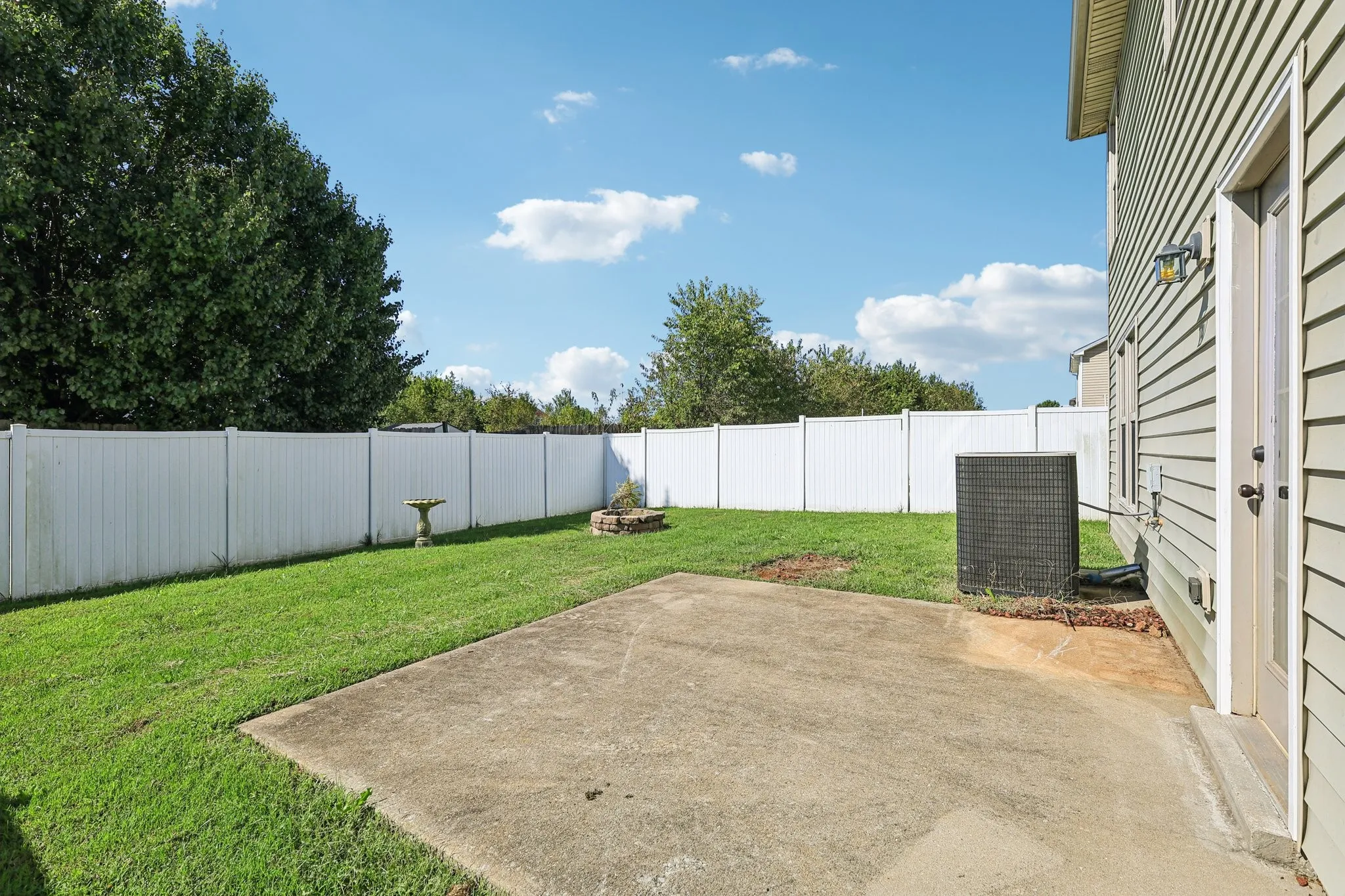 Outside you’ll find a covered front porch, 1-car garage, and concrete patio overlooking a private fenced yard with a fire pit.
