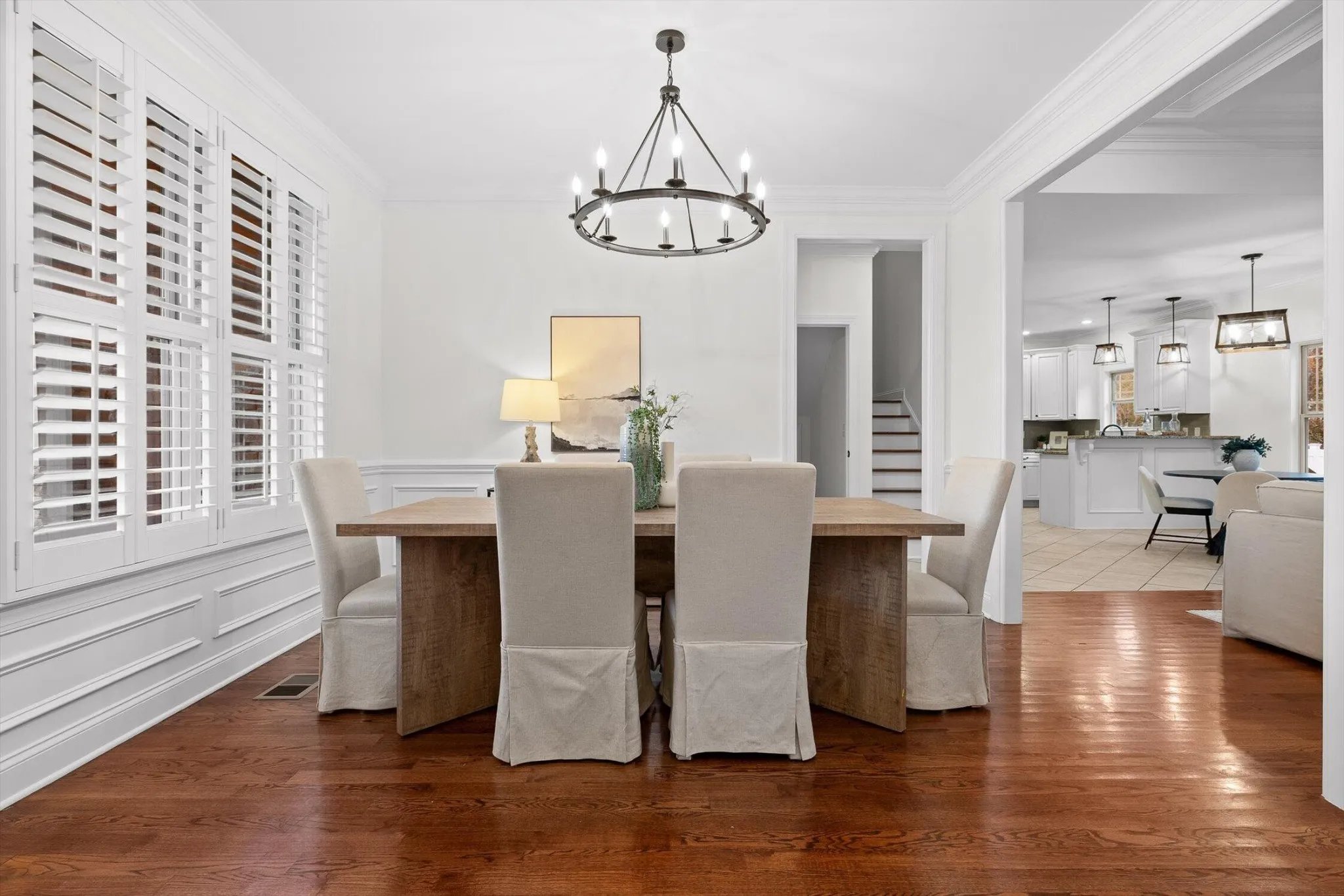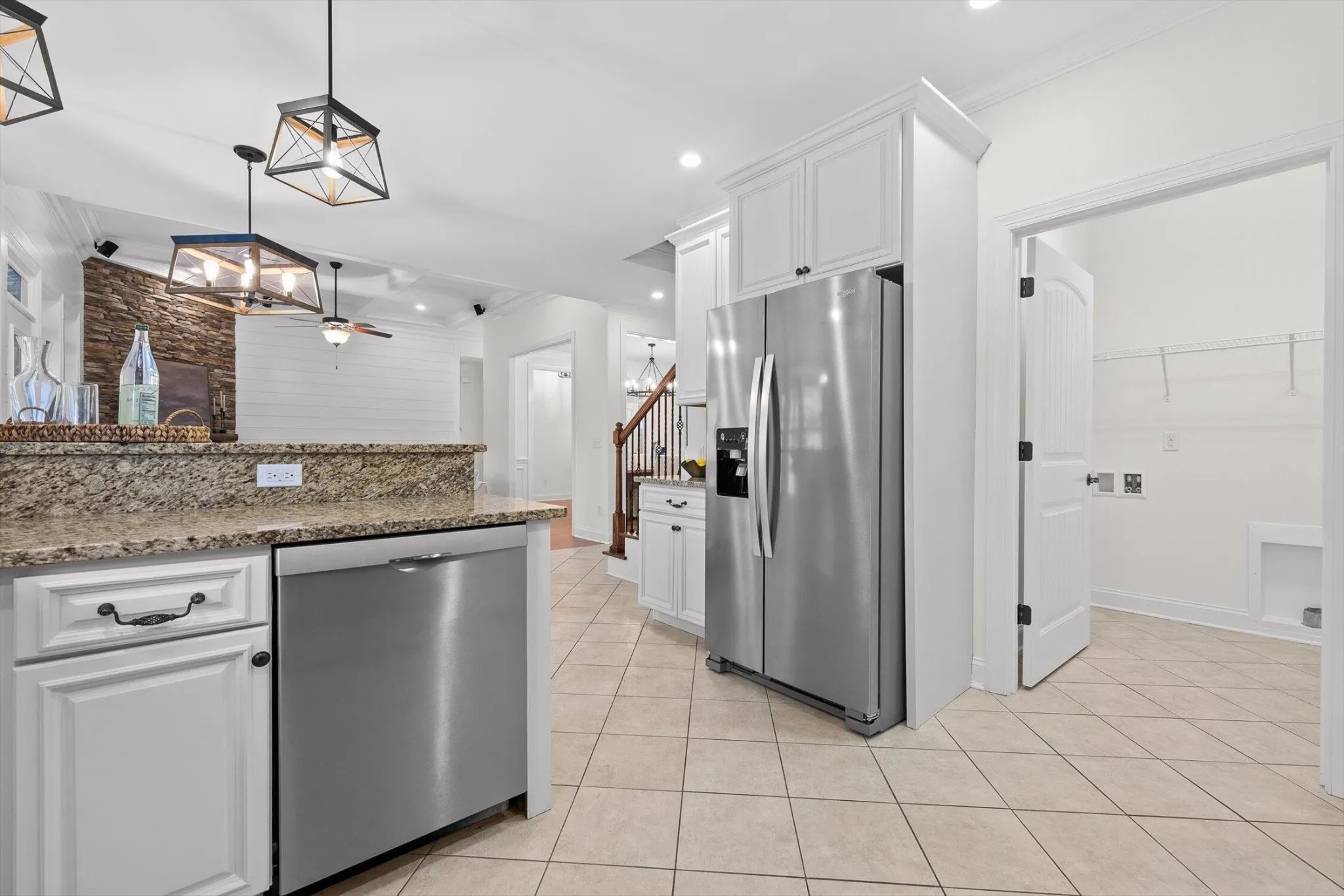 Inside, you’ll find a bright and open main level featuring hardwood floors throughout the main living areas and fresh paint that gives the home a crisp, updated feel. The kitchen is equipped with stainless steel appliances, granite countertops, and freshly painted cabinetry, flowing seamlessly into the dining and living areas — perfect for everyday living or entertaining.