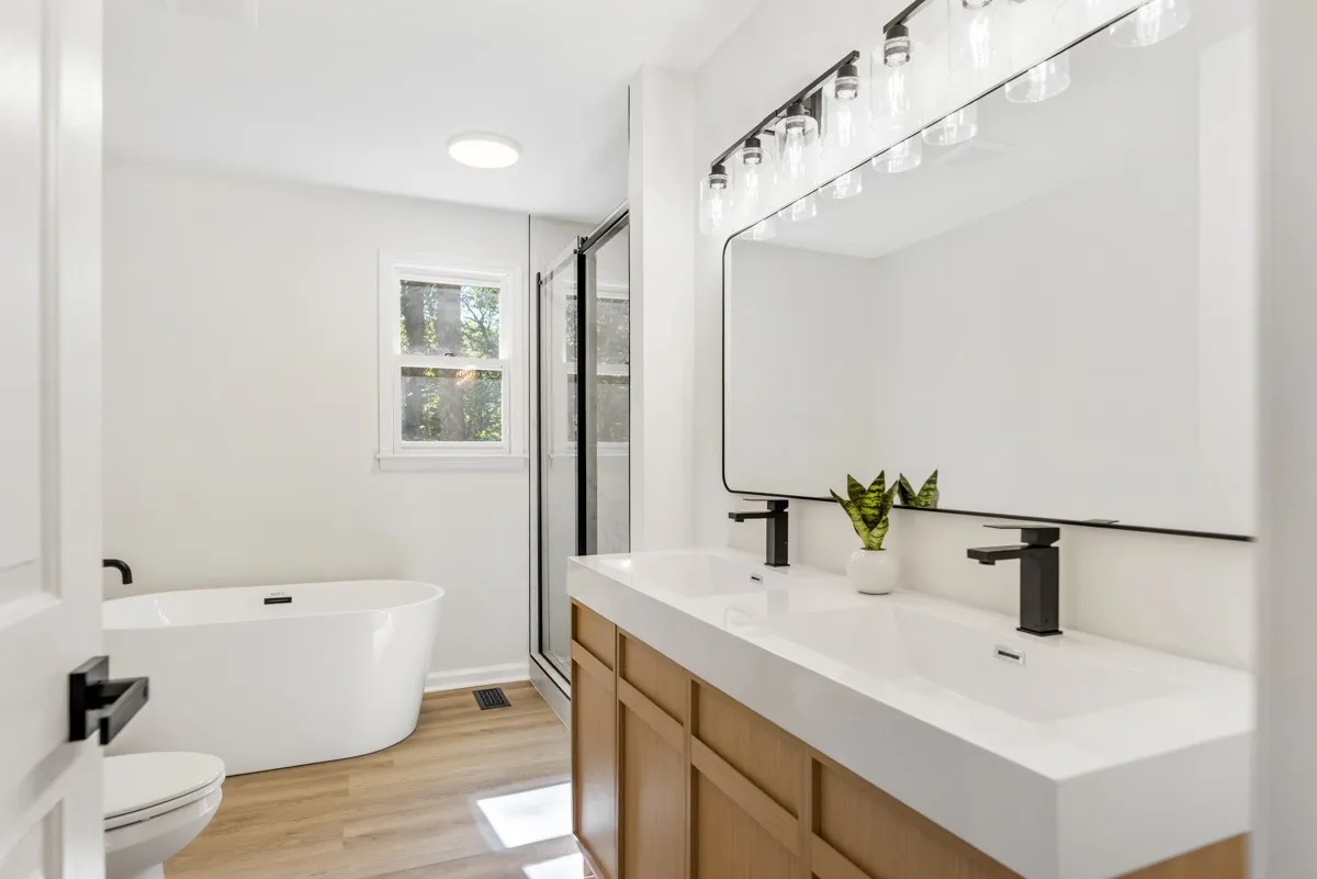 Discover this stunning Batey-built home that perfectly blends classic craftsmanship with modern upgrades. Located on a cul-de-sac street this home has been thoughtfully updated with a New Roof and New Appliances, stylish bathrooms, modern lighting and ceiling fans in every bedroom. The primary suite on the main level offers a true retreat with a renovated bathroom, complete with a stand-alone soaking tub and floor-to-ceiling tile shower. Floor to ceiling windows in the eat in Kitchen fill the room with natural light – bringing the outside in. Spacious secondary bedrooms with large closets. Enjoy cozy evenings by the wood-burning fireplace in the spacious family room or hanging out on the generous front porch. The brand-new back deck overlooks nearly an acre of land with no backyard neighbors to be seen. The finished walkout basement provides endless possibilities — perfect for a bonus room, home gym, office, or media space. Large two car side-facing garage. No HOA. Yard has been strawed and seeded. This home truly has it all — stylish updates, quality construction, and versatile living spaces. Virtual Walk Through is available in Media Section.
