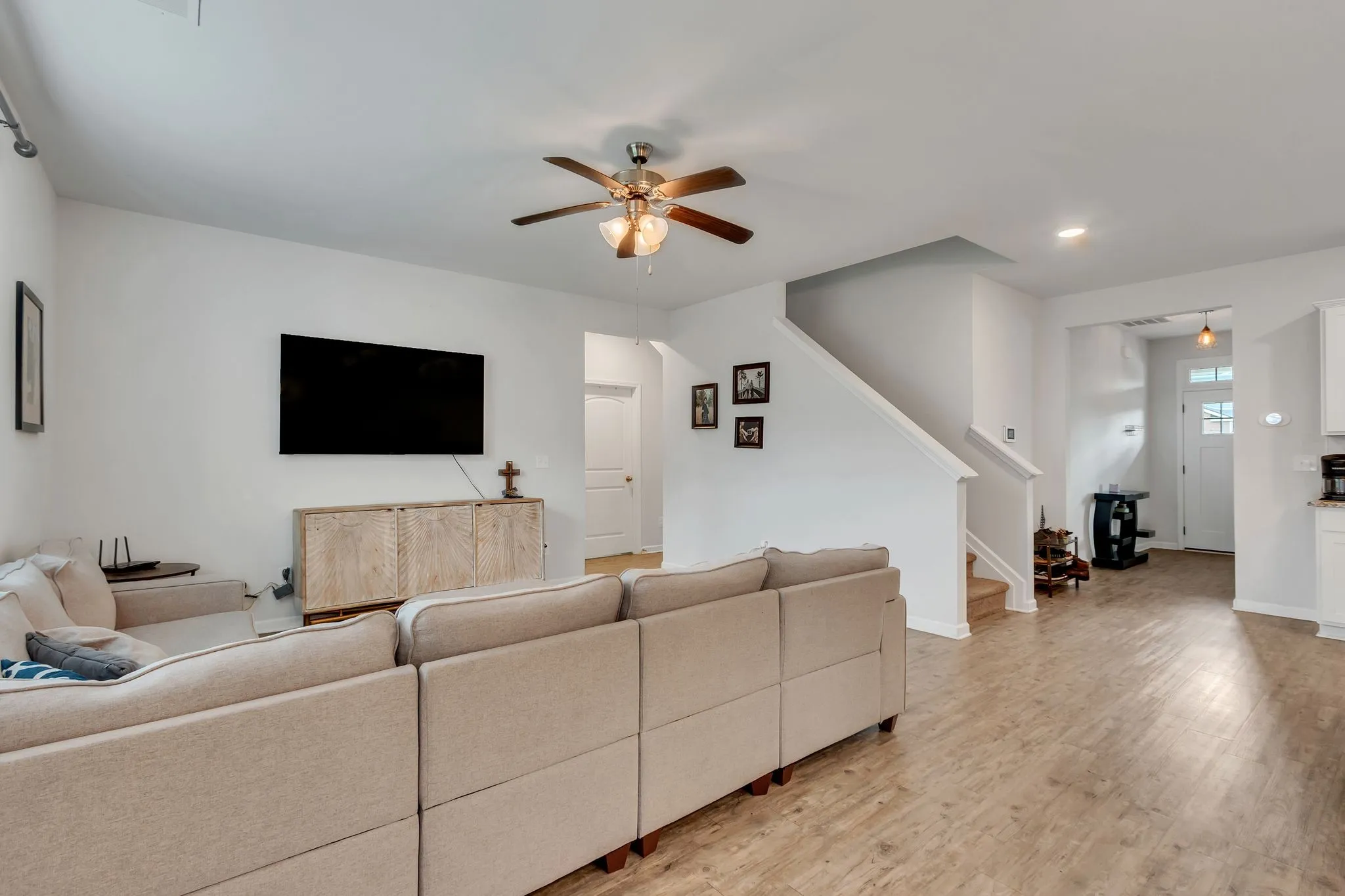 This beautifully designed home has room for the whole family! Features include a formal dining room and a spacious open-concept living area that flows into the eat-in kitchen with stainless steel appliances, gas cooktop, pantry, and island with extra seating—perfect for busy mornings or casual meals. One bedroom downstairs is ideal for guests or in-laws. The upstairs includes a bonus area for kids to play, study, or hang out, plus a primary suite and three more bedrooms. The primary offers a double vanity, separate shower, and soaking tub for unwinding after a long day. Enjoy outdoor time in the fenced backyard with a covered patio, firepit, and built-in seating. Centrally located between Columbia and I-65—close to parks, restaurants, and shopping. 1% lender credit with use of preferred lender.