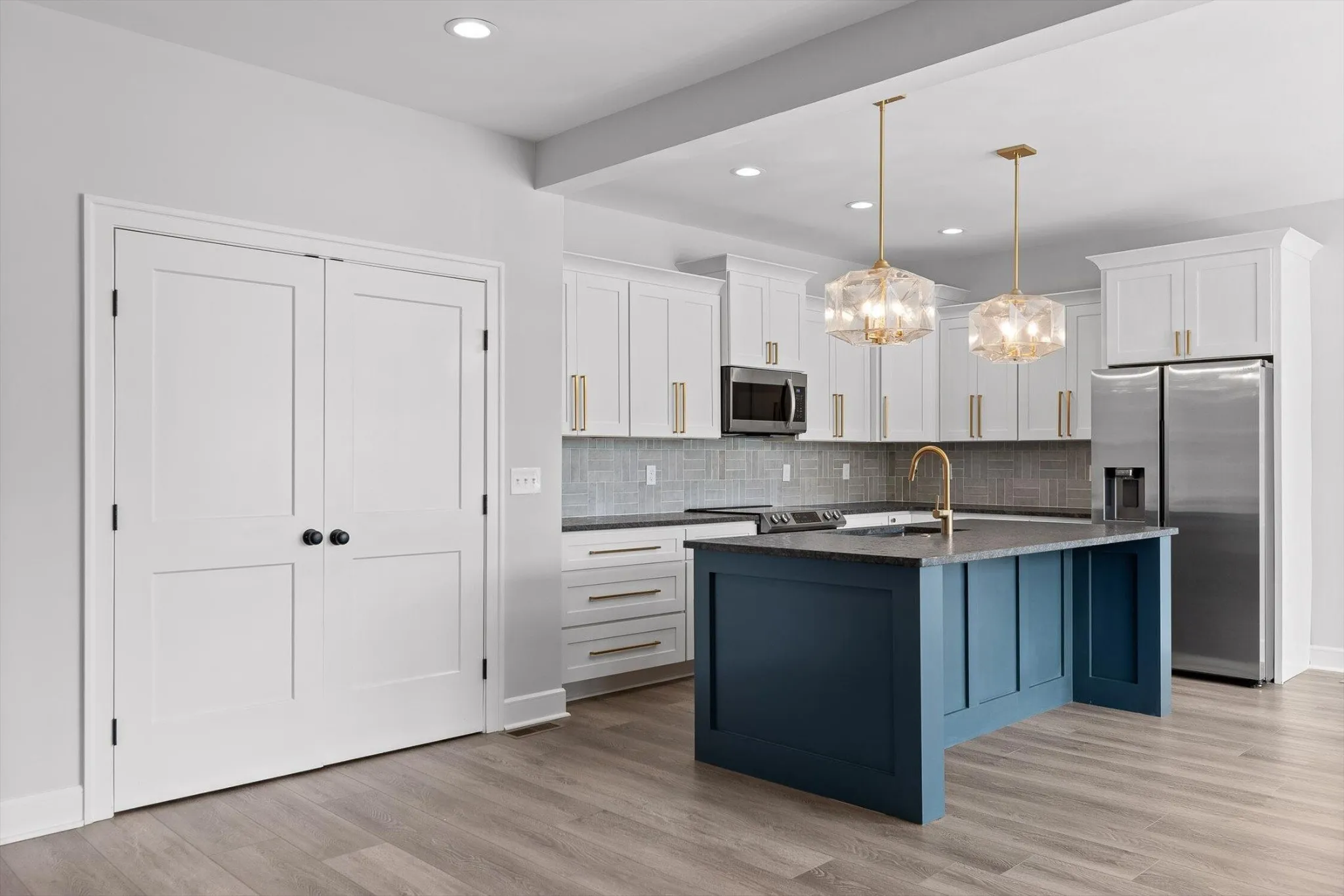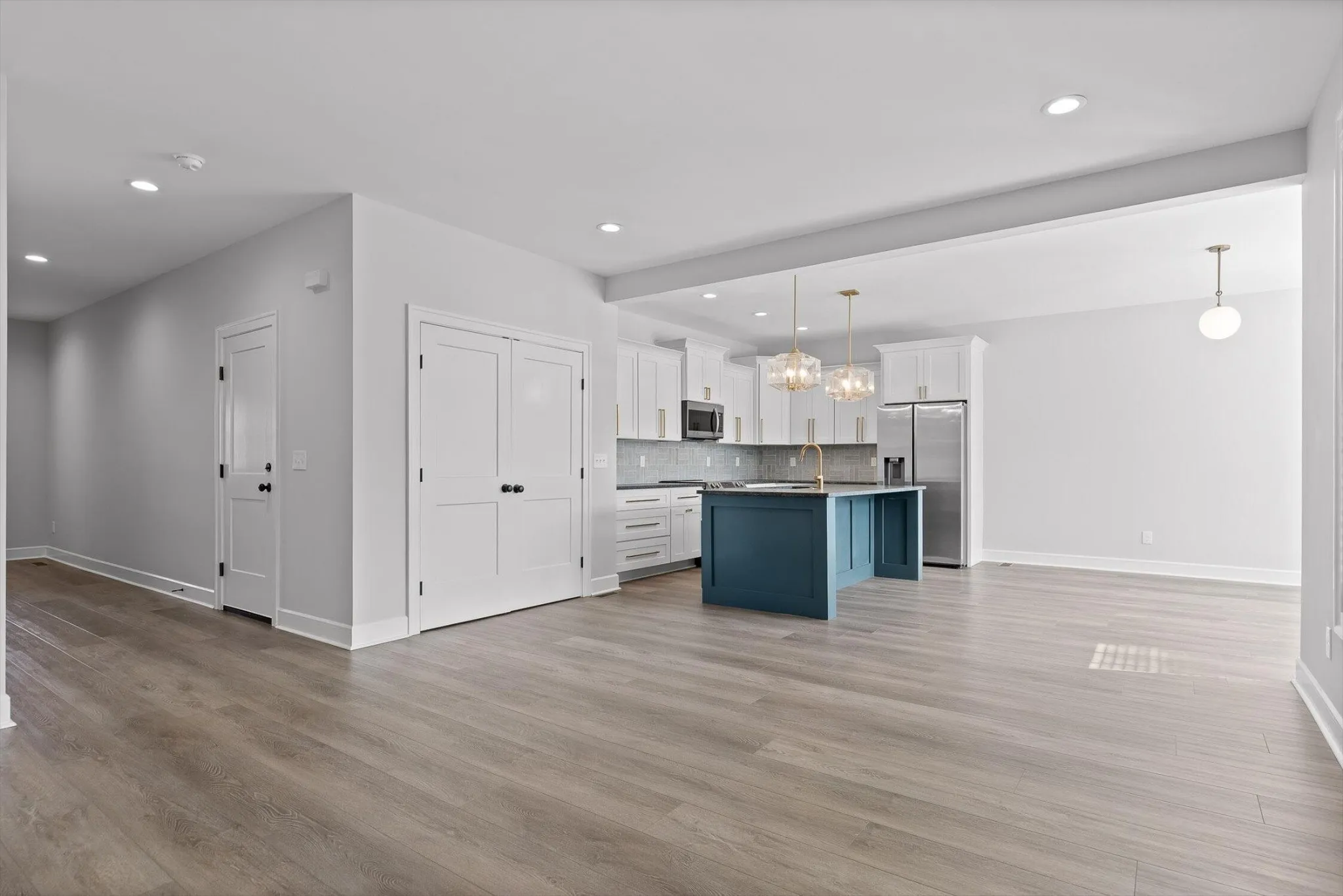 The main level also features a large pantry with built-in shelves, a convenient powder room, and easy access to the 2 car garage.