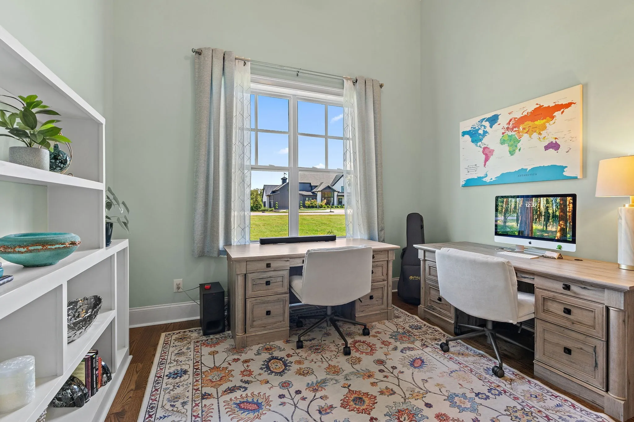 The gourmet kitchen is a chef’s dream with brand-new appliances, GE Monogram Smart Oven, leathered granite counters, and custom cabinetry. A gorgeous main-floor owner’s suite offers abundant closet space and a stunning spa-like bath, while a main-level guest suite provides comfort for visitors. Upstairs, discover a huge bonus room. All the closets feature custom built-ins! This home has abundant storage, including easily accessible attic space.\n