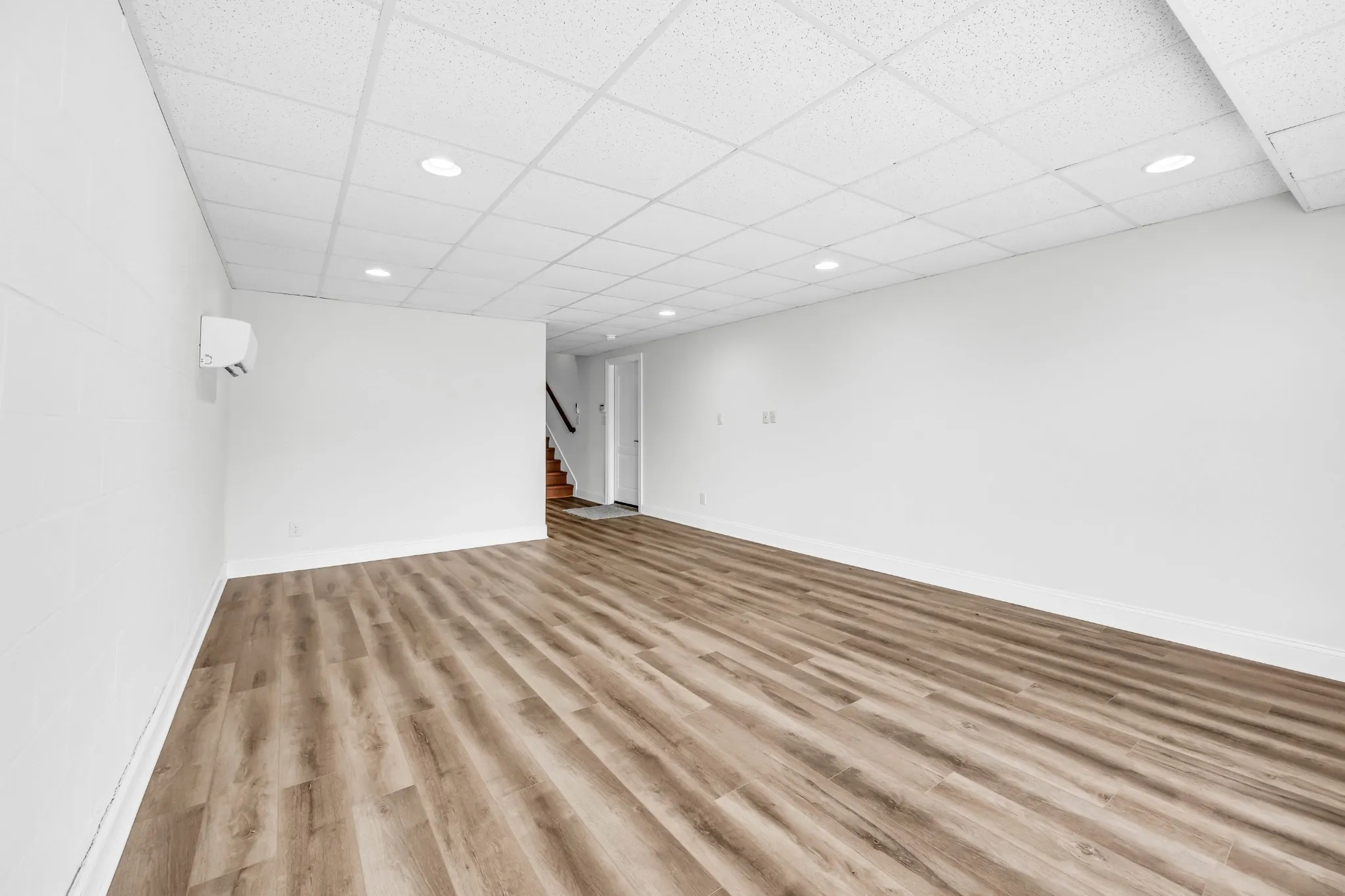 Down the stairs you’ll find a ‘Daylight Basement’ with a finished room having a French