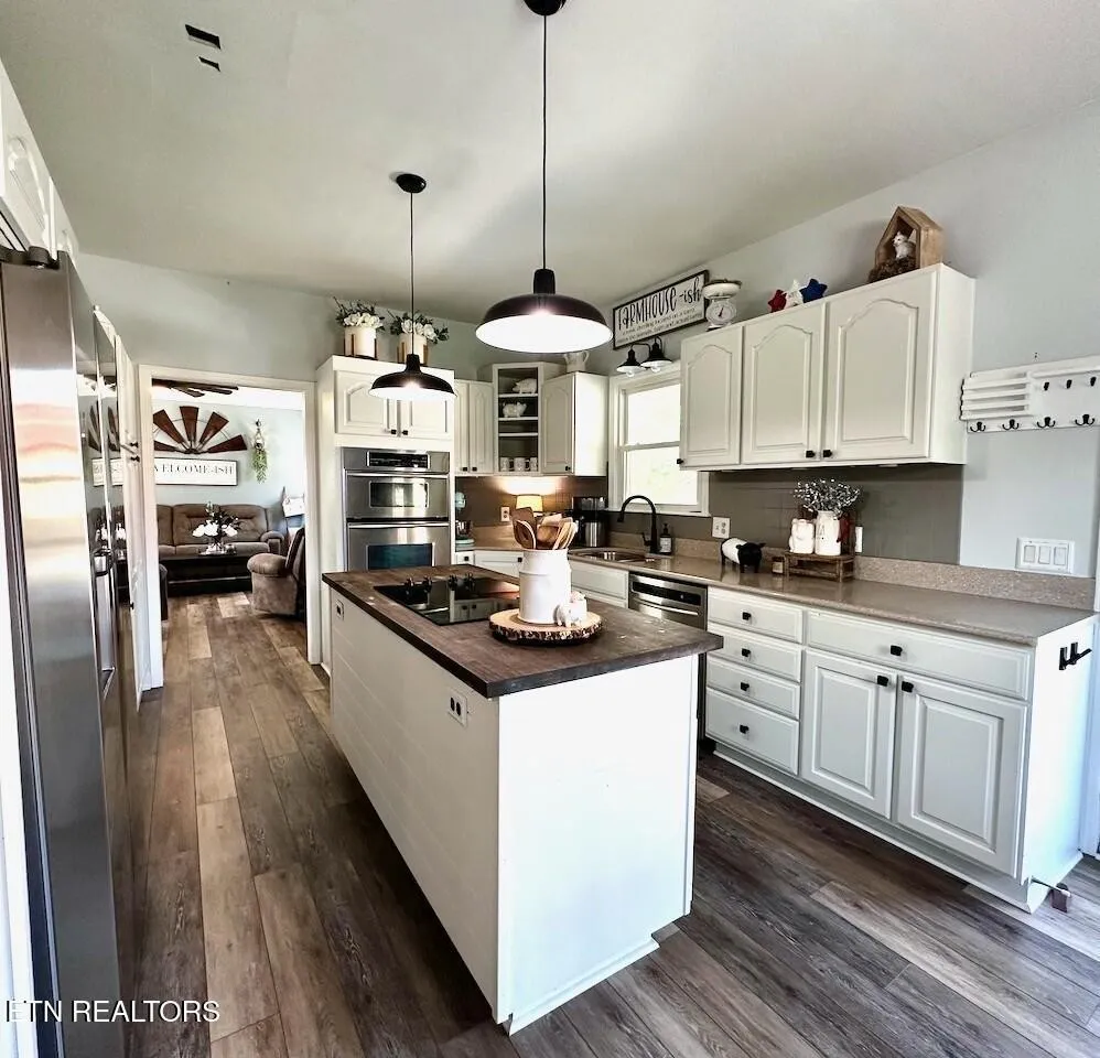 ***STUNNING LAKEFRONT RETREAT*** less than a mile from Hurricane Marina. Experience breathtaking views of Center Hill Lake from this gorgeous home, perfectly situated on a spacious level lot. Thoughtfully upgraded, this home offers modern comforts & elegant finishes throughout. Brand new windows & screens installed from Renewal by Anderson, which carry a transferrable lifetime warranty. The Gourmet Kitchen is a chef’s dream, featuring an Electric Cooktop on a Central Island, Oven, Convection Microwave, Refrigerator & Dishwasher. The luxurious Primary Suite boasts a bathroom w/ Double Vanities, large glass-enclosed tiled Shower and an expansive Walk-In Closet. 2 Guest Bedrooms upstairs share a Full Bath. The finished Basement provides endless possibilities – ideal for a Man-Cave w/ an extra room used as a Hobby Room or additional storage. Car enthusiasts & hobbyists will love not only the attached 2-Car Garage, but also the detached 4-Car Garage for your Boat or RV. Don’t miss the opportunity to own this stunning lake home w/ unparalleled views & exceptional amenities! Check out Ariel Video in the Link’s Section below.