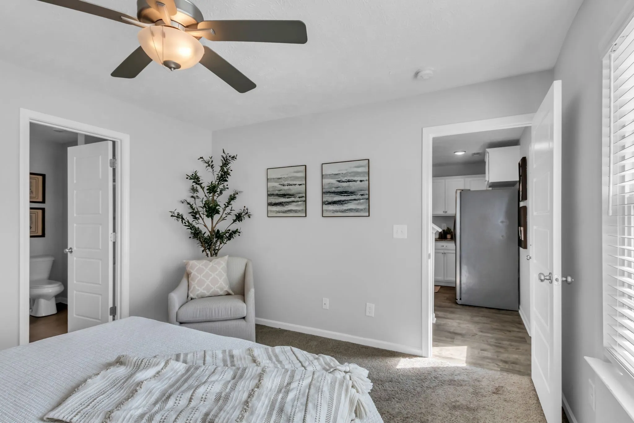 Beautifully maintained townhouse priced under $350K, offering everything you’ve been searching for! This 3 bedroom, 2.5-bath home features a sought-after first-floor primary suite, providing ultimate convenience and privacy. The primary bedroom comes complete with a spacious en-suite bath, giving you a private retreat after a long day. Upstairs, you’ll find two additional bedrooms and a shared full bath. The open living area on the main floor is designed for modern living, with an airy layout that flows effortlessly from the kitchen to the dining and living spaces, making it perfect for entertaining. A fenced back patio offers privacy and a safe space for children or pets to enjoy and a double car garage with epoxy flooring! Located in the desirable Triple Rockvale Schools district, this home feels like new. If you’re looking for comfort, space, and a prime location—this is a must-see!