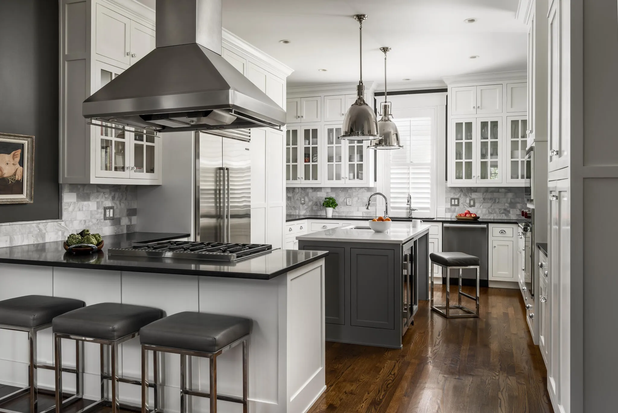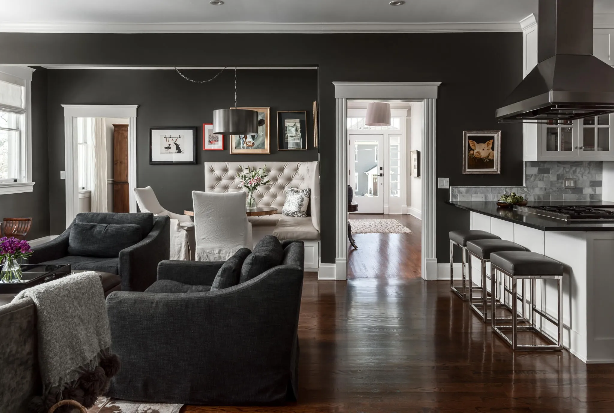 Circa 1920 classic Revival style Foursquare on quiet street in sought after Belmont neighborhood. Thoughtfully renovated over the years and impeccably maintained. Generously proportioned living spaces with soaring ceilings and large windows throughout. Fantastic Kitchen renovated in 2018 with Wolf/ Sub- Zero appliance suite with island and bar seating, opens to the family room. Primary bedroom located on second floor with light filled bath and walk in closet. Custom covered porch with stone floor overlooking private backyard. Third floor bonus room with half bath. 700 square feet of additional storage, workshop or studio space in basement, which has been waterproofed and encapsulated.