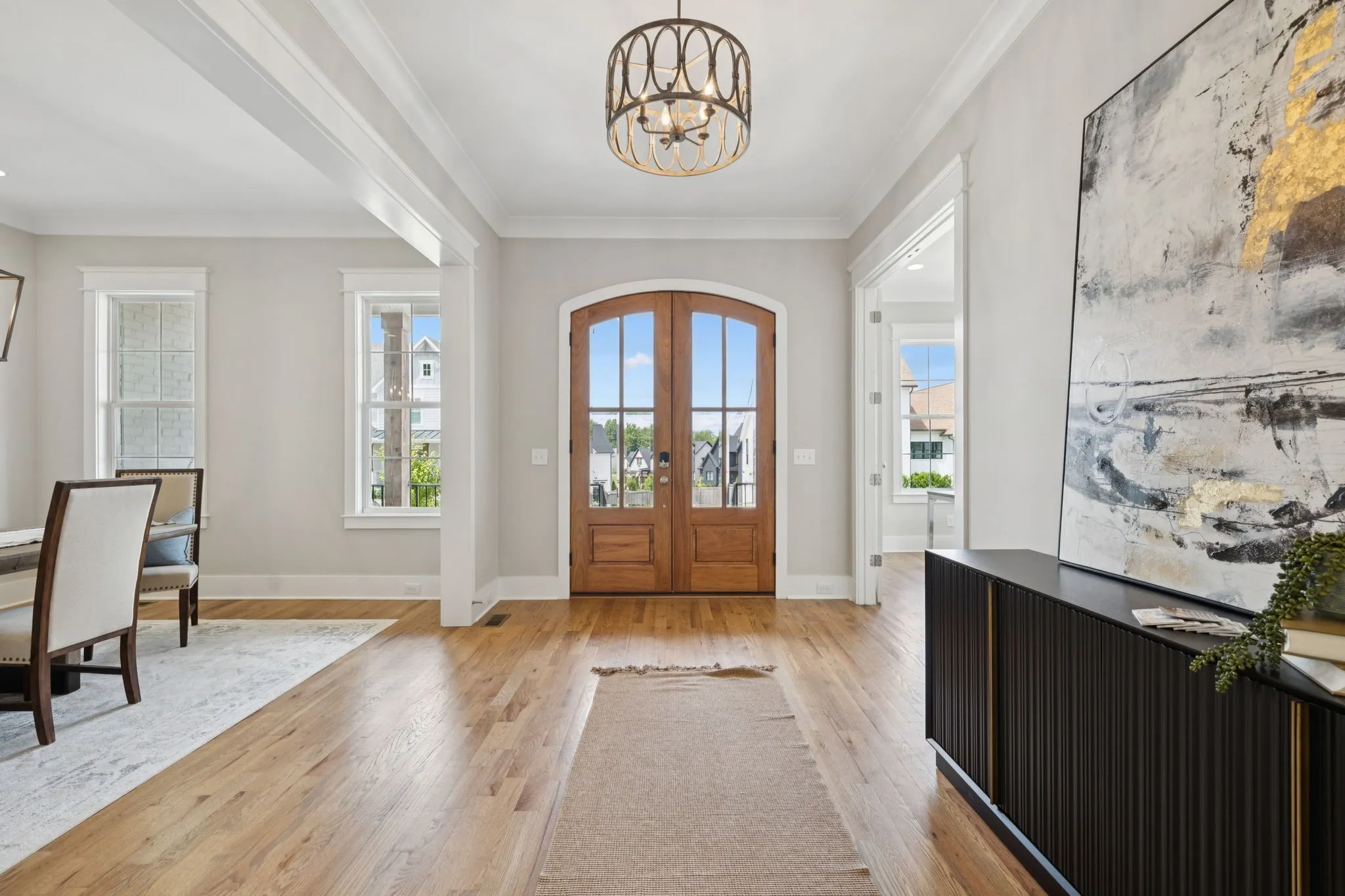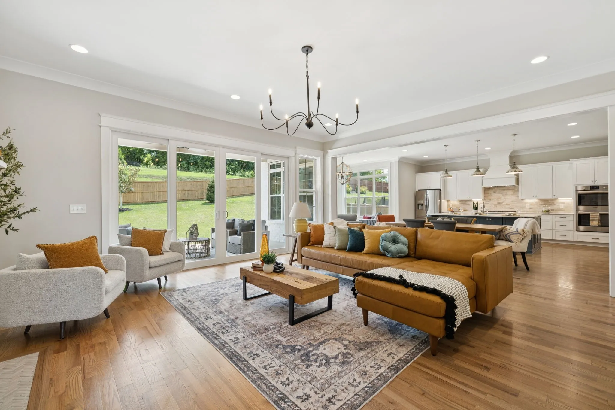 Discover the epitome of southern elegance in this expansive 5,000+ sq ft stunner, boasting 5 bedrooms and 4.5 baths in the heart of Thompson’s Station. Perfectly designed for entertainers, the open-concept floor plan seamlessly connects a luxurious chef’s kitchen—complete with high-end appliances and custom cabinetry—to the inviting living and hearth rooms, creating an ideal space for gatherings large and small. A grand formal dining room and dedicated home office add versatility, while gleaming finished hardwoods span the entire main level. Tastefully-selected fixtures and finishes exude timeless southern charm throughout! Step through the stately four-panel sliding glass doors from the main living area to your private outdoor oasis, featuring a cozy fireplace for al fresco evenings. Inside, two additional fireplaces provide warmth and ambiance. The fully fenced backyard offers ample space for play or relaxation, backing onto a serene common area lined with mature trees for added privacy. Conveniently located just a short stroll from Sarah Benson Park, Company Distilling, and Circa restaurant, this home combines luxury living with unbeatable accessibility. Don’t miss your chance to own this stunning retreat—schedule a showing today!