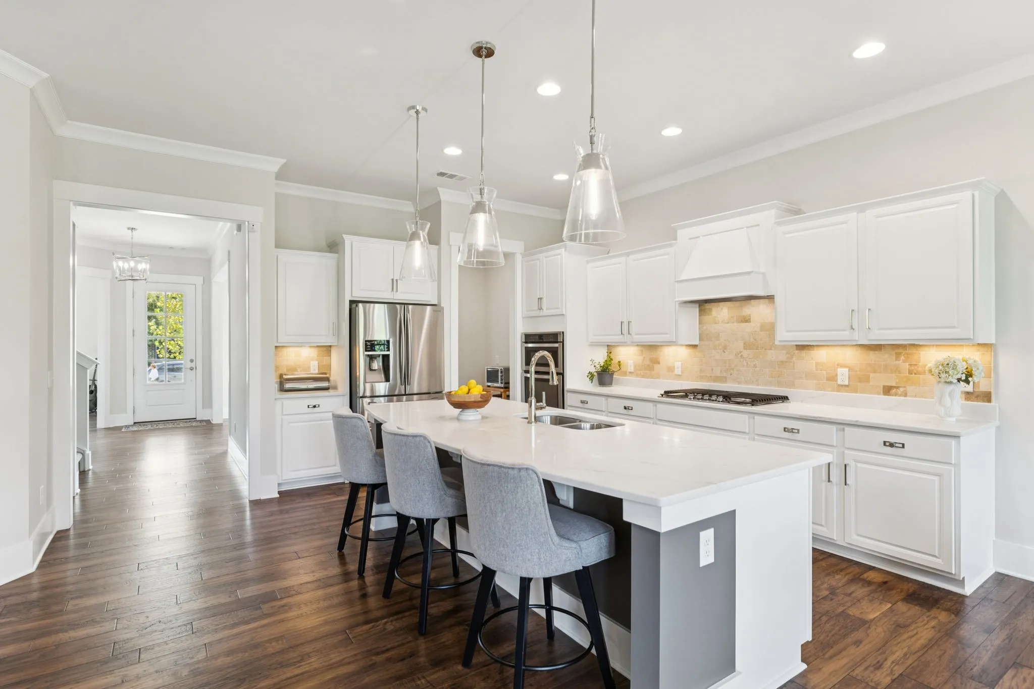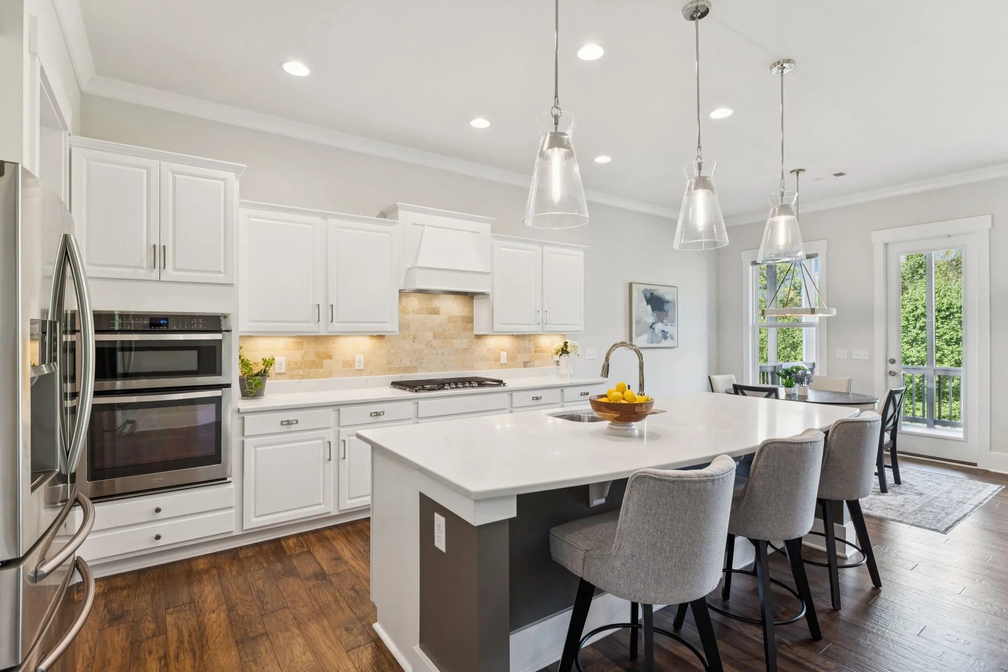 +"PublicRemarks": "Welcome to 1074 Amelia Park Dr, a beautiful all-brick home featuring a rare, walk-out basement! The main level features hardwood floors, 10-foot ceilings, and abundant natural light. The layout includes a formal dining room and an open kitchen that perfectly blends functionality and design—showcasing an oversized island, quartz countertops, thoughtfully refinished cabinetry, upgraded hardware, designer lighting, gas cooktop, and generous storage. The living room opens effortlessly from the kitchen and dining areas, providing a warm central gathering space anchored by a corner fireplace. A private office at the front of the home (currently used as a piano room) offers flexibility for work or creative pursuits, while a dedicated home office and drop zone off the garage entry add everyday convenience. Upstairs, the primary suite features double closets, a walk-in shower, and dual vanities with a bonus beauty counter. Three additional bedrooms with walk-in closets, a full bathroom, a laundry room with utility sink, and a spacious bonus room complete the second level.The basement level provides exceptional versatility with nine-foot ceilings, a large rec room with exterior access, gym or flex room, fifth bedroom with full bath, two oversized storage closets, and an unfinished area with potential to expand. A Rinnai tankless water heater is also located on this level, providing efficient performance and consistent hot water throughout the home. Positioned on a prime lot with a flat, tree-lined backyard, this property also includes a two-car extra-deep garage. The ceiling beam was raised during construction for added vertical clearance, and a wall-mounted door opener allows space to accommodate a car lift with the ability to stack two vehicles on one side if desired. The overall 28-foot depth also provides room to park additional vehicles. Beyond the property, you’ll love the convenience of being just minutes from Franklin’s best shops!"