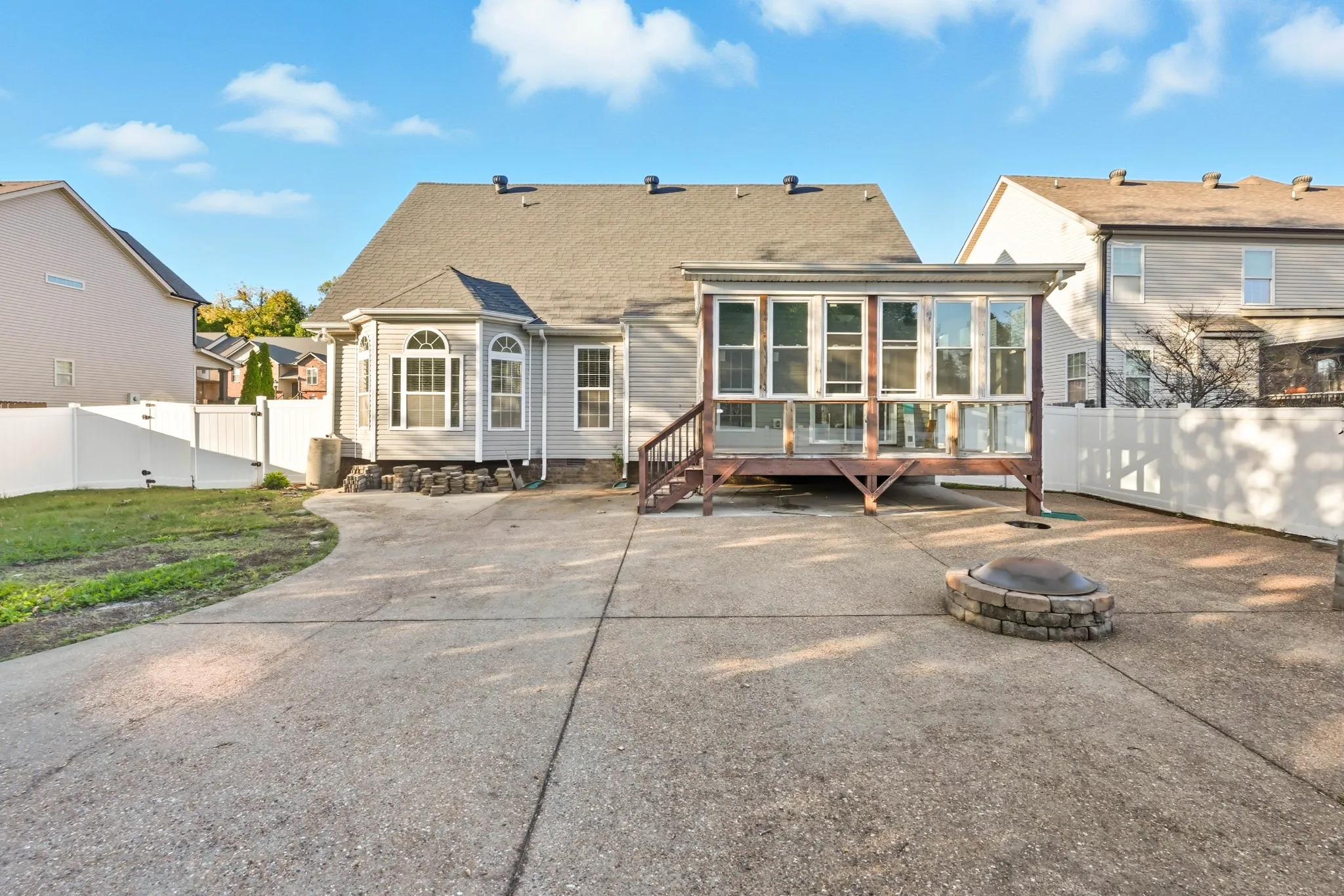 This spacious 3-bedroom, 2.5-bath home features high ceilings and a versatile bonus room perfect for a home office or playroom. Enjoy outdoor living with a screened porch, large patio, and fully fenced backyard. The open layout offers a bright, airy feel ideal for both relaxing and entertaining. Located in a quiet neighborhood, this home combines comfort, style, and functionality