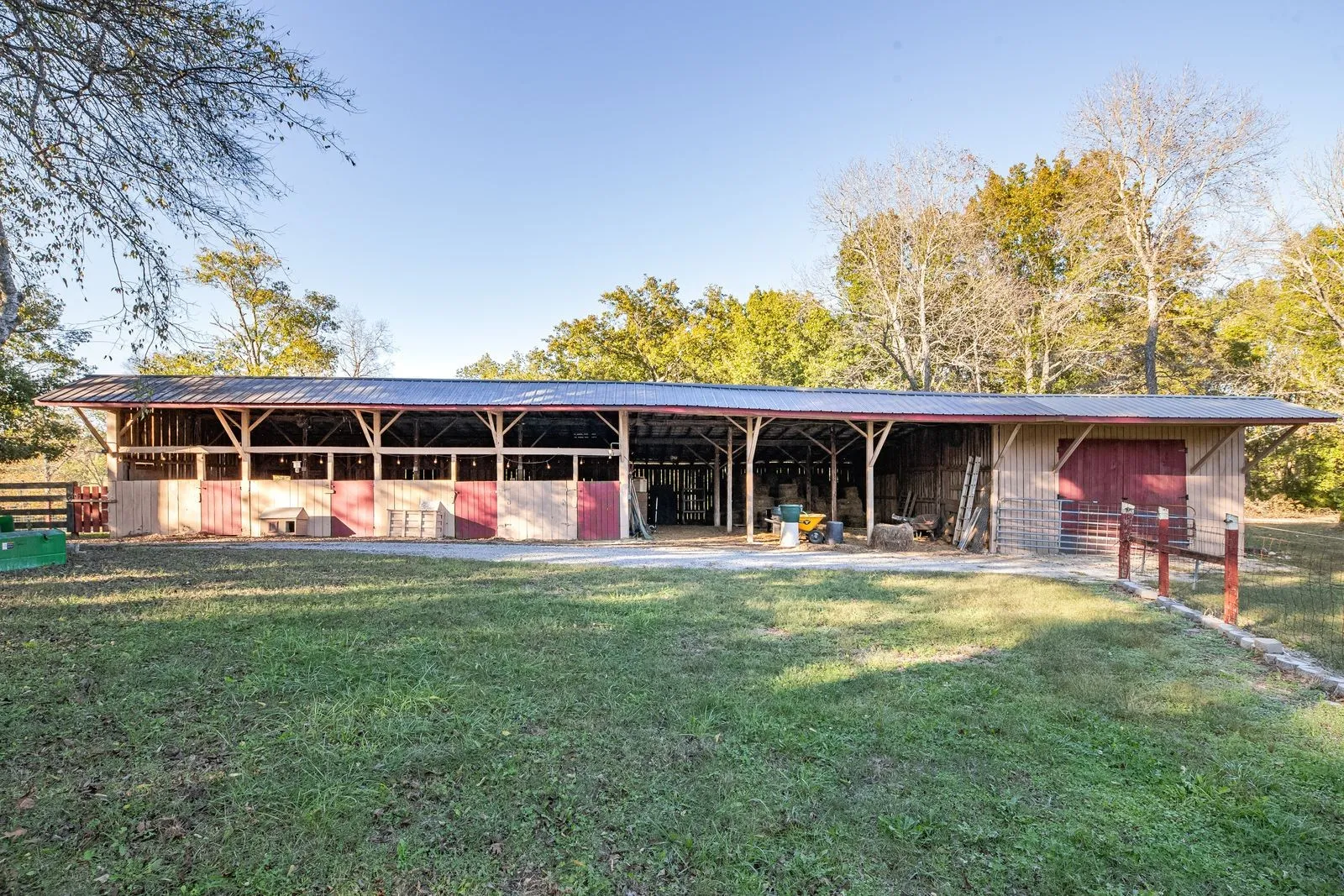 Picturesque horse farm with 18.8 acres! Close to interstate, but very private. Beautiful open floor plan ranch home with 9 foot ceilings, great room with fireplace, that could be used at heat source through the HVAC, sunroom, luxury laminate floors and large kitchen. This house is ready to move right into! The house has an attached apartment that would be great for parents or teenagers. It has over 600 sq feet complete with den, full kitchen, bath and bedroom! Has a 4-6 stall barn over 2520 sq feet in it with a concrete storage at the end for all your farm equipment. Barn is in excellent condition! 24×12 storage building and lots of pasture and woods! Cross fenced for horses, cows or any animals you want.
