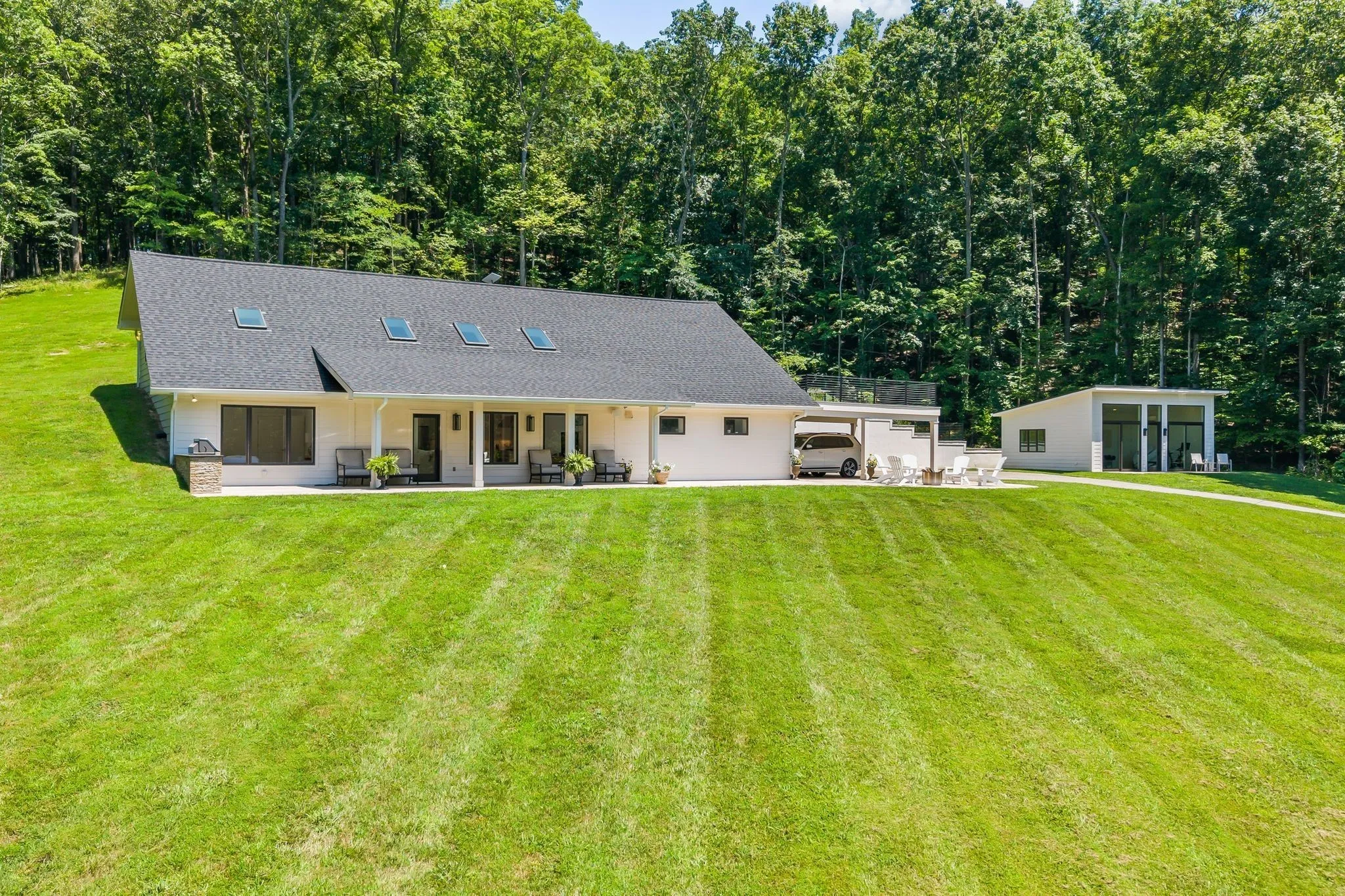 Private-gated: newly renovated home, guest House and Barn situated on 128 acres with 5 additional perc sites at the end of a private road just minutes to downtown Franklin, Westhaven and Leipers Fork. This could be the for the ultimate family compound! Miles of on-property riding & hiking trails wind through scenic pastures, mature hardwoods, and multiple pure springs. Usable rolling topography with four additional perc sites positioned on panoramic elevations—ideal for a future family compound legacy. Infrastructure is already in place: Tesla solar with utility sell-back (per seller), spring + well water with advanced purification, fiber internet, and geothermal HVAC. Improvements include a renovated contemporary farmhouse (comfortable as primary, weekend base, or while you build), a detached writer’s studio/guest house, and a fully insulated 2,800± SF metal barn (40×70×14) suitable for tour buses, workshop, car collection, or creative use. Equestrian-friendly with direct access from the driveway to the Natchez Trace Parkway for cycling and scenic drives. Approx 7 min to Westhaven Kroger and 15 min to Franklin & Leipers Fork. Top-rated schools nearby. Buyers/Buyer’s agent to verify all information.